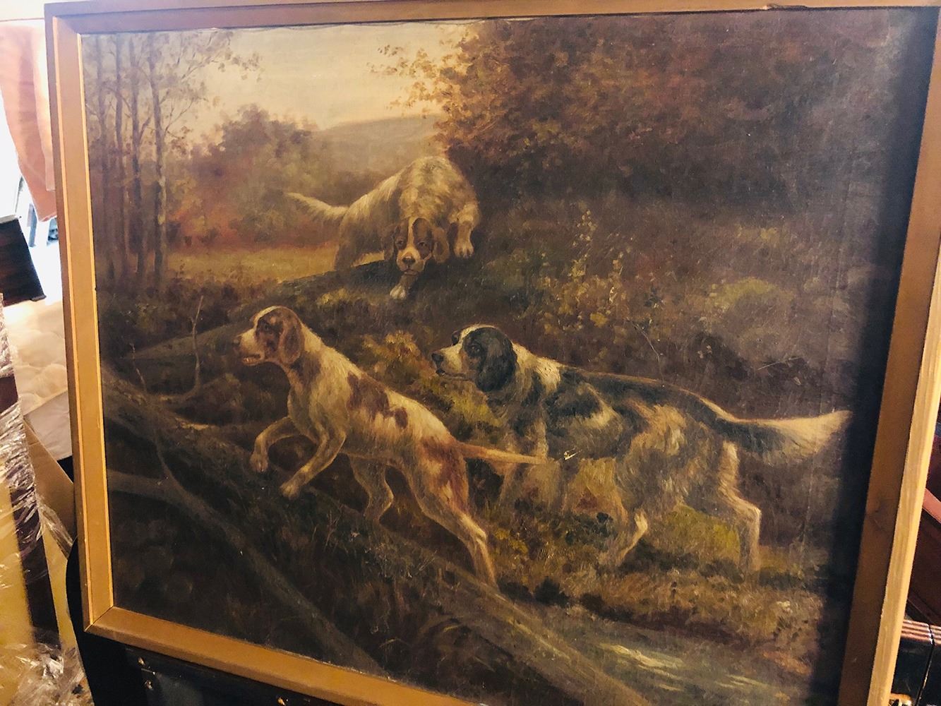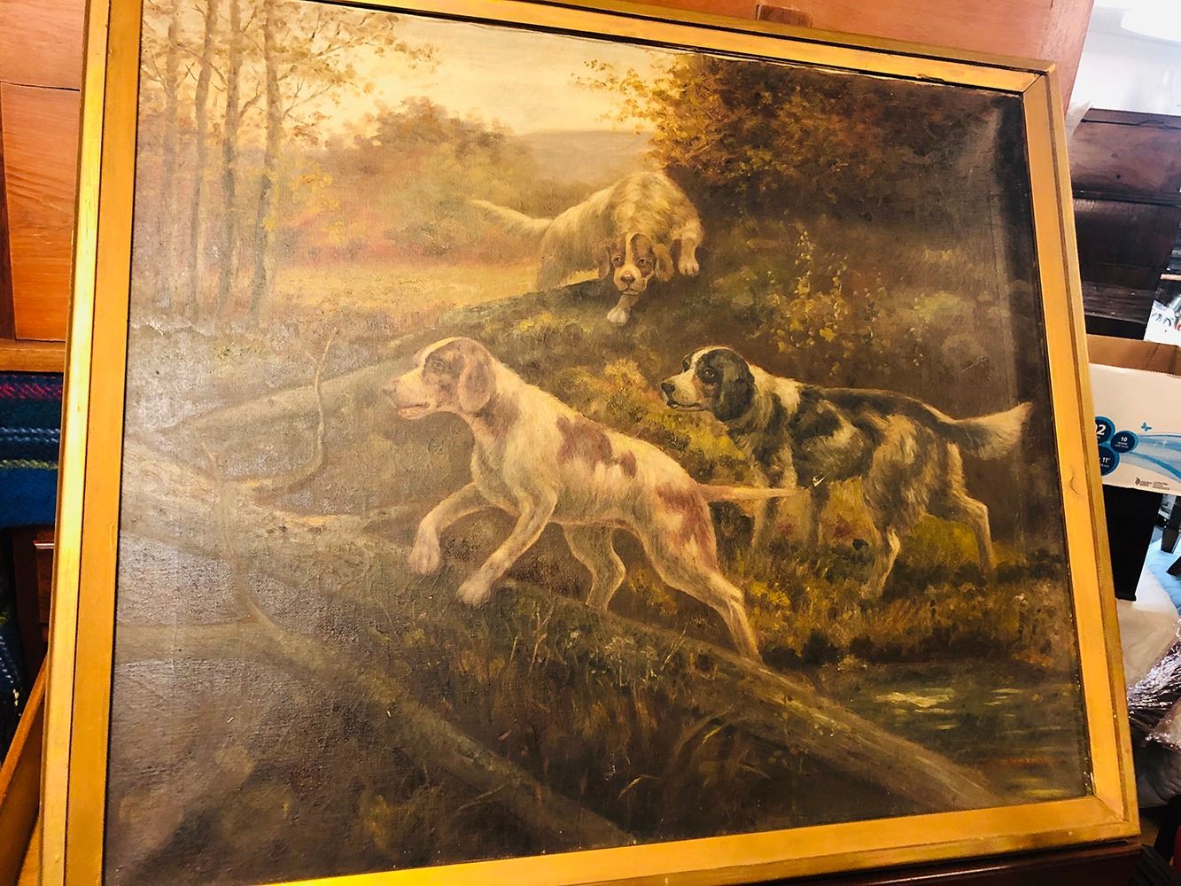 Thomas Dalton Beaumont (b. 1869) oil on canvas Setters, Hunting Dogs, signed. Thomas Dalton Beaumont was an American artist noted for his paintings of Setters on the hunt.
