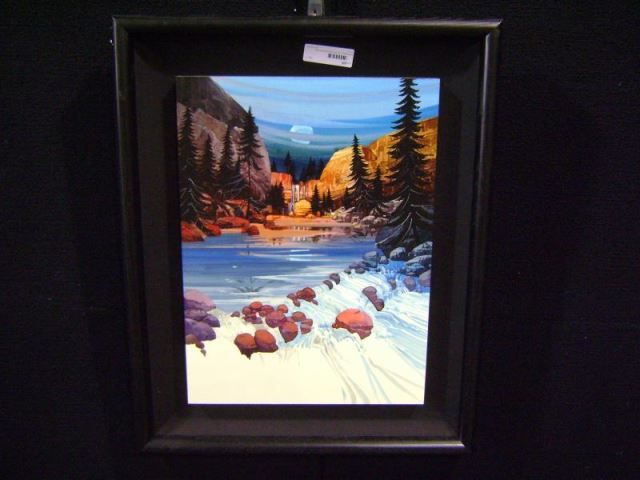 Oil Painting on Canvas of a Herd of Buffalo in the Foreground Maker-Unknown