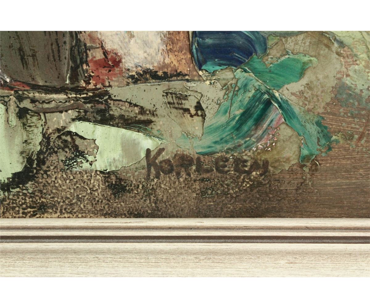 Abstract flowers; oil on panel with frame; signed Korleen; 73 cm X 63 cm