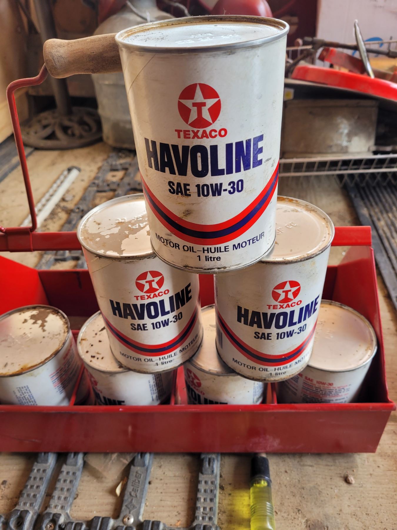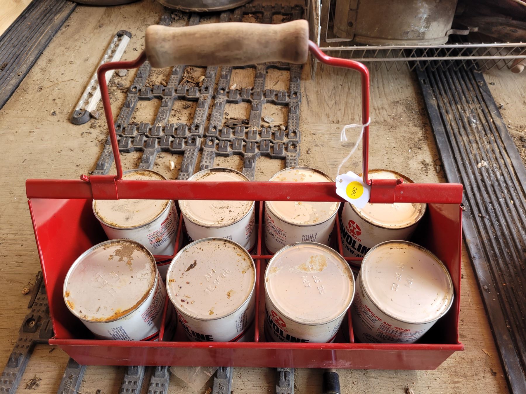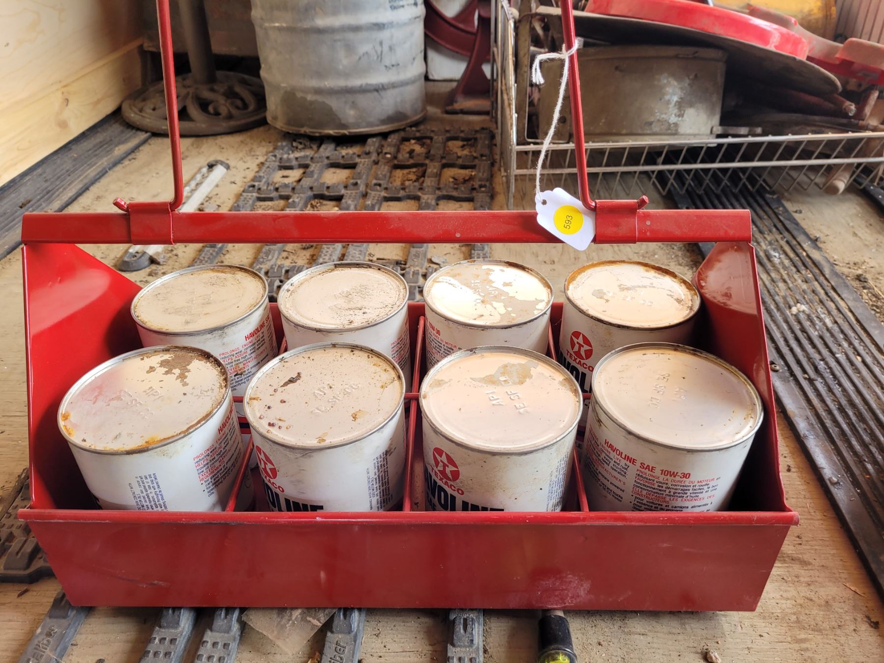 Oil Qt. Carry rack with 8 full halvoline liters - red
