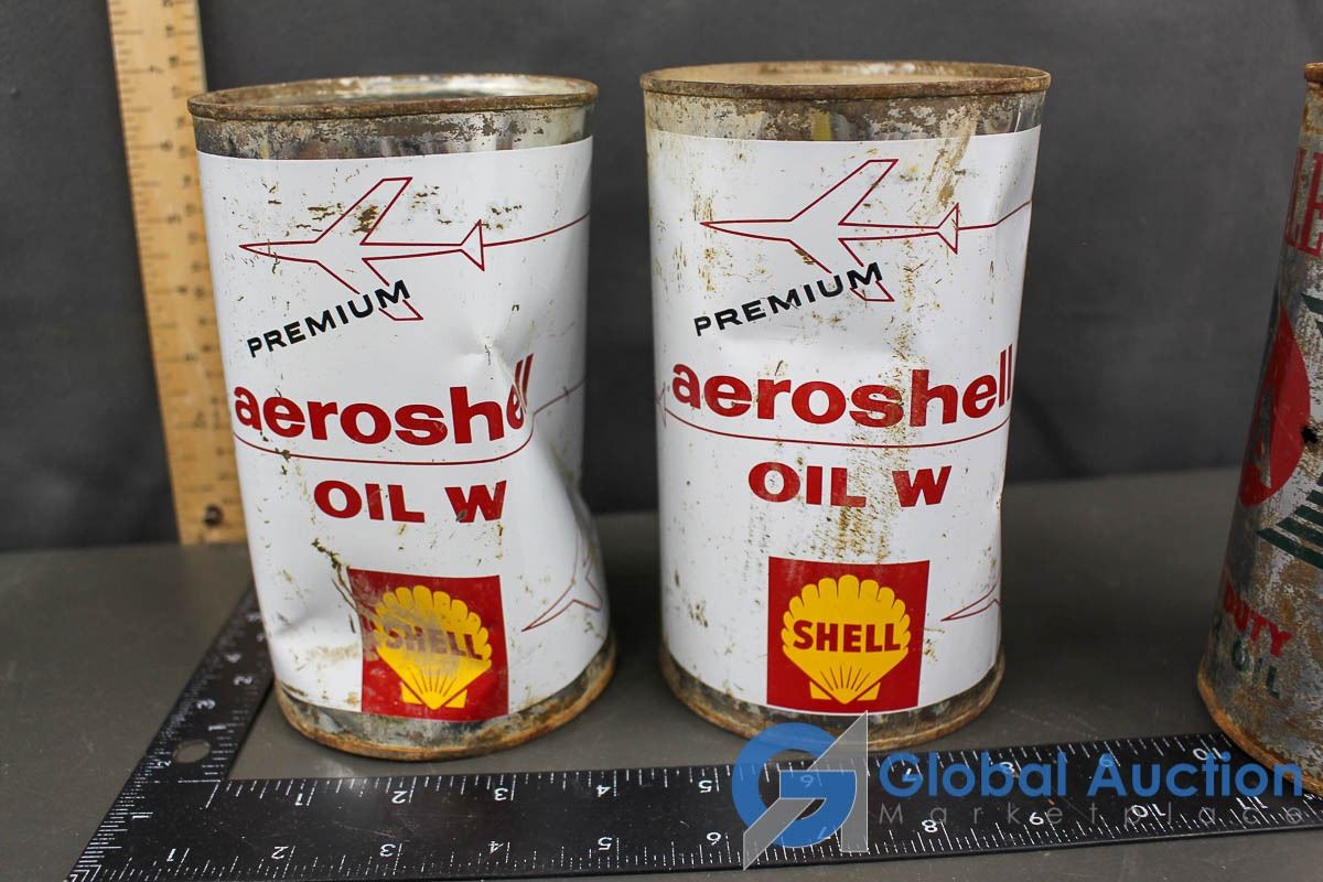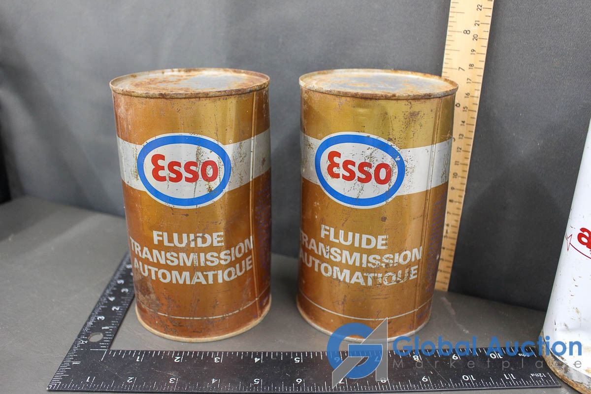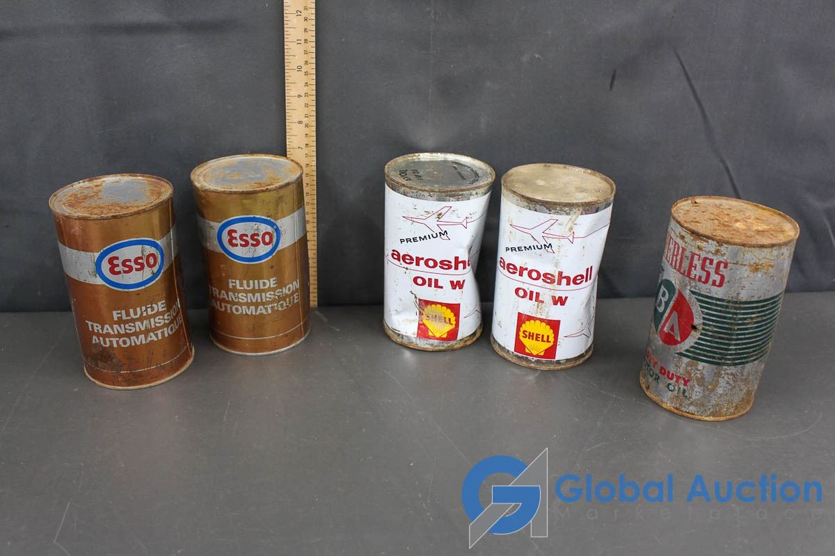 Oil Tins: (2) Esso (Full), (2) Shell & 1 BA Empty