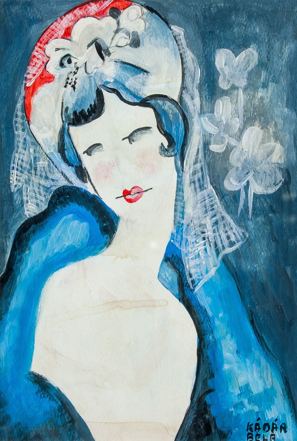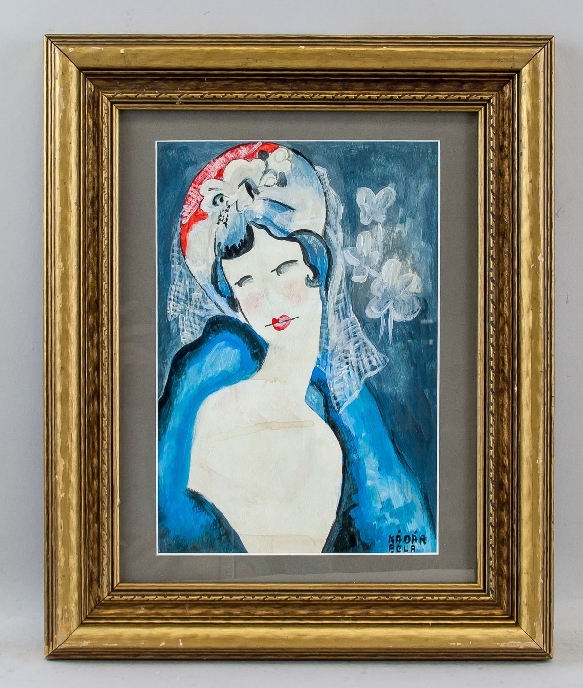Oil and Tempera on paper, framed. Hungarian Cubist School. Featuring a portrait of a lady. Signed Kadar Bela on the lower right corner. Stamped A DALEN with signature on verso. 27.5 x 19 cm (10.8 x 7.5 inches), frame: 41.5 x 34 cm (16.3 x 13.4 inches). PROVENANCE: Southern Ontario estate.