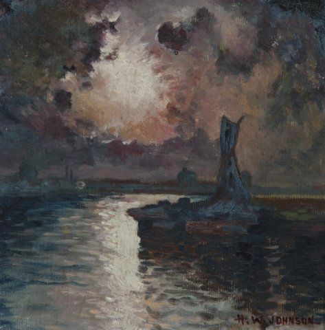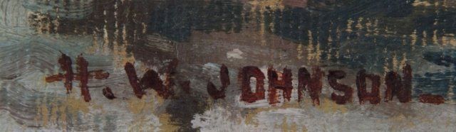 Abstract ocean scene. Oil on canvas. 19th century. Signed at l.r., "H.W. Johnson". Unframed. 9" x 9".