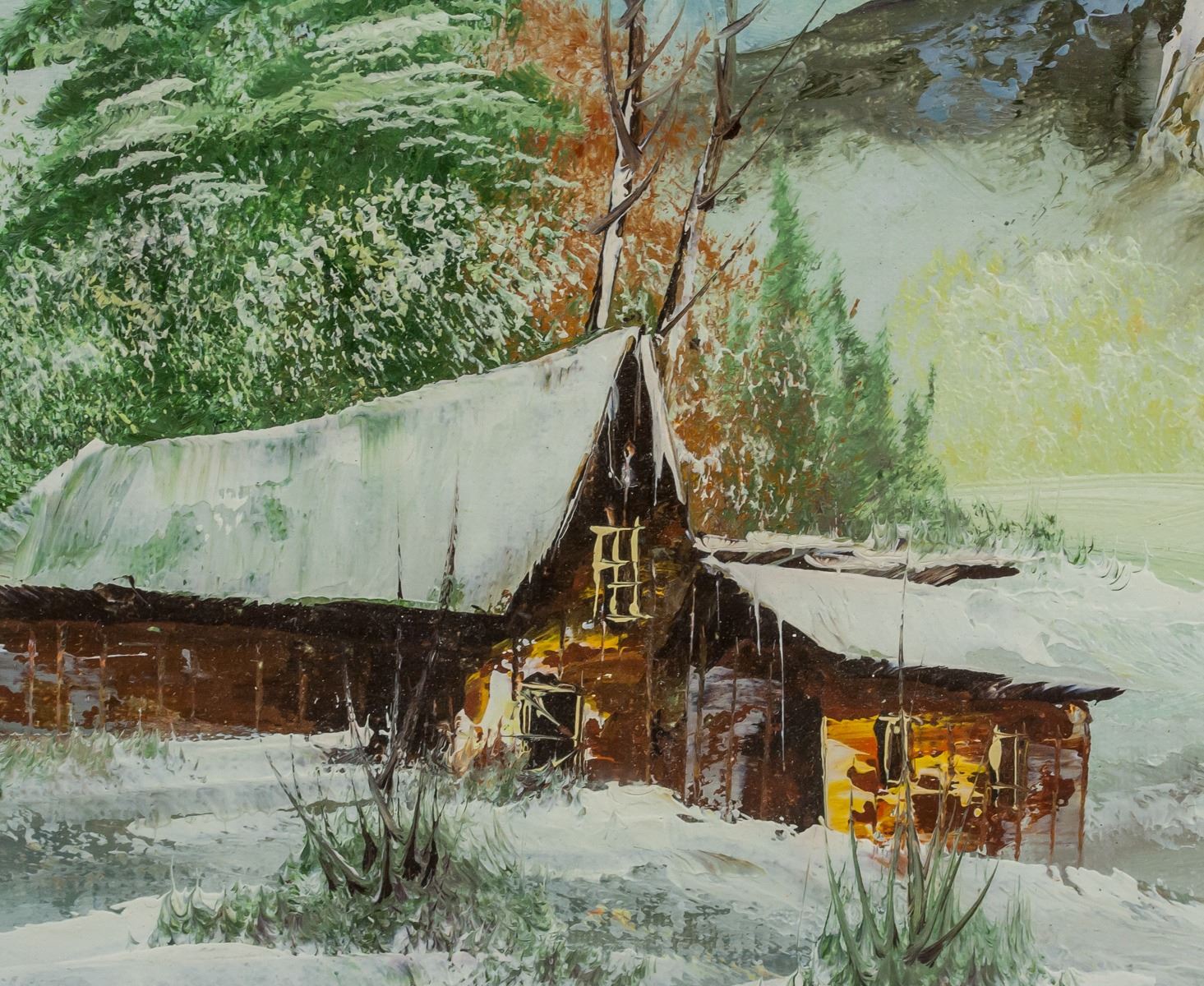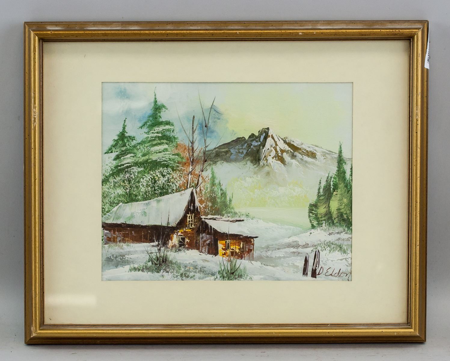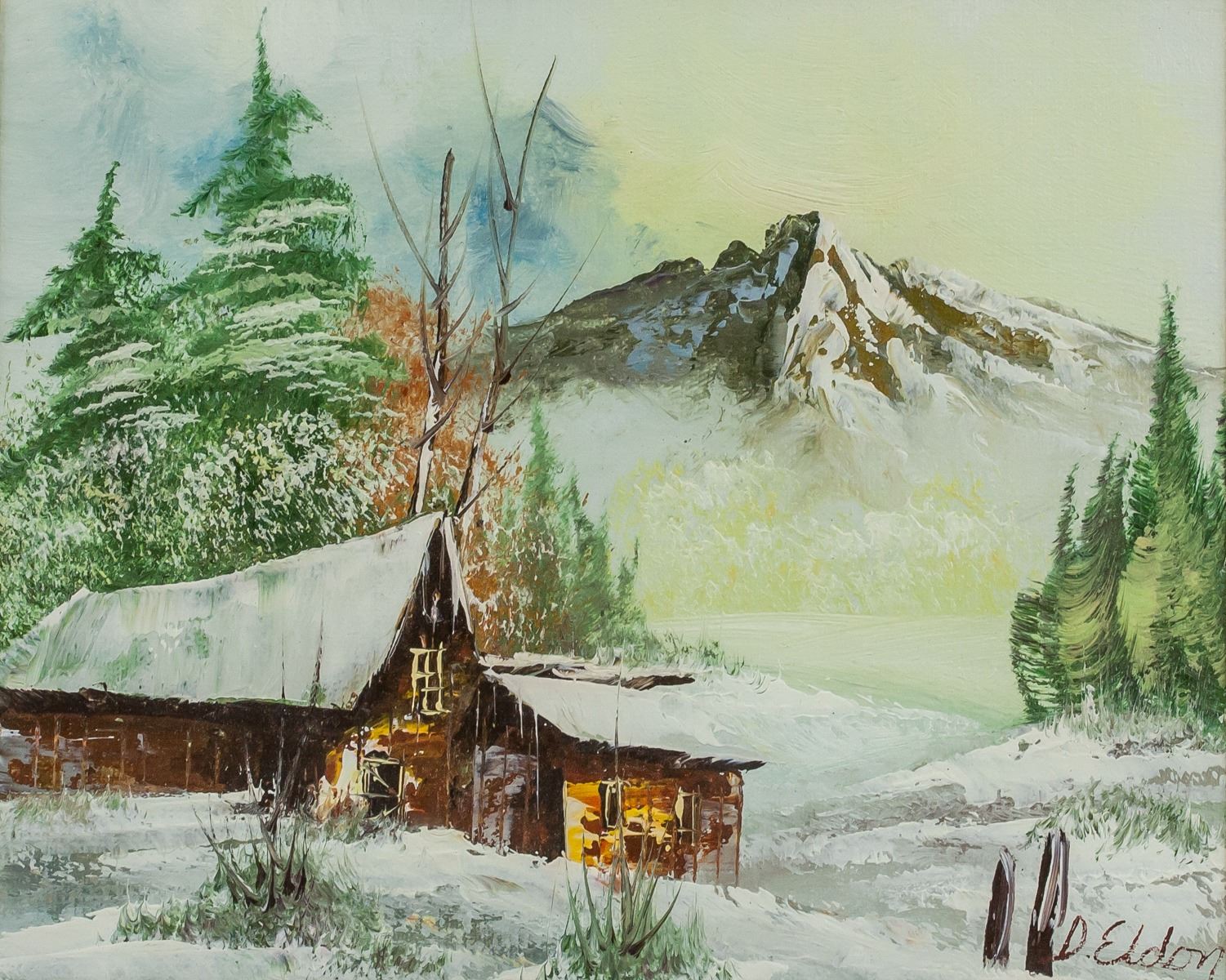 Oil on board, framed. Featuring a winter landscape scene. Signed D. Eldon on the lower right corner. 21 x 26 cm (8.2 x 10.2 in) Frame: 32 x 40 cm (12.5 x 15.75 in). PROVENANCE: This lot carries limited provenance from a Private Toronto estate