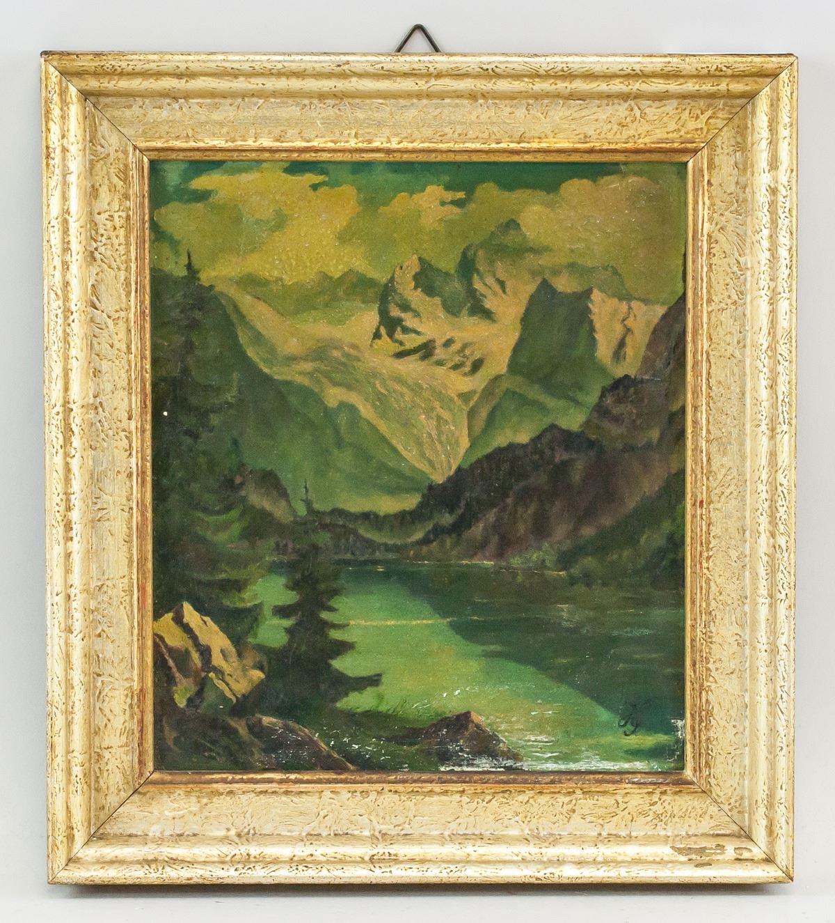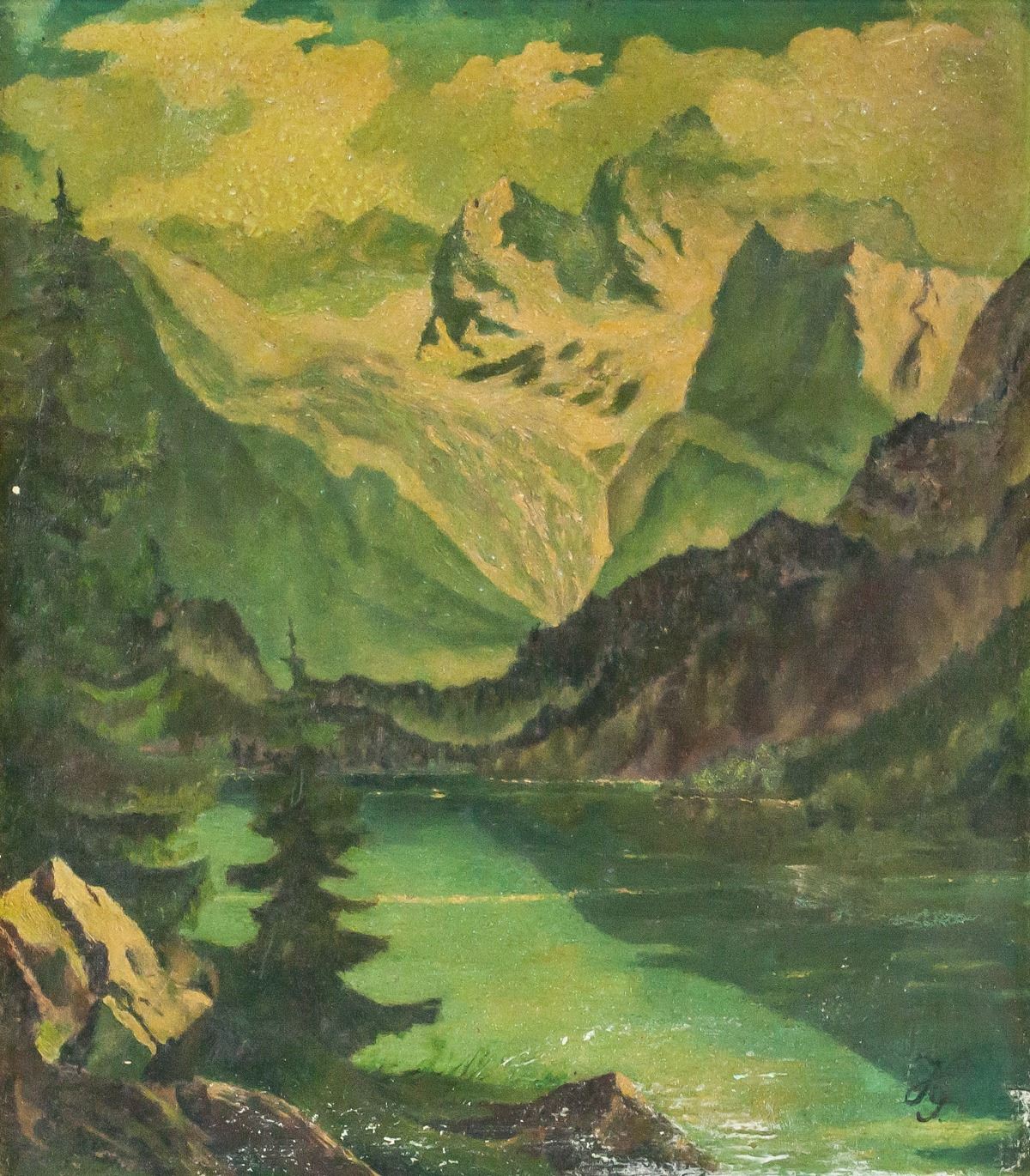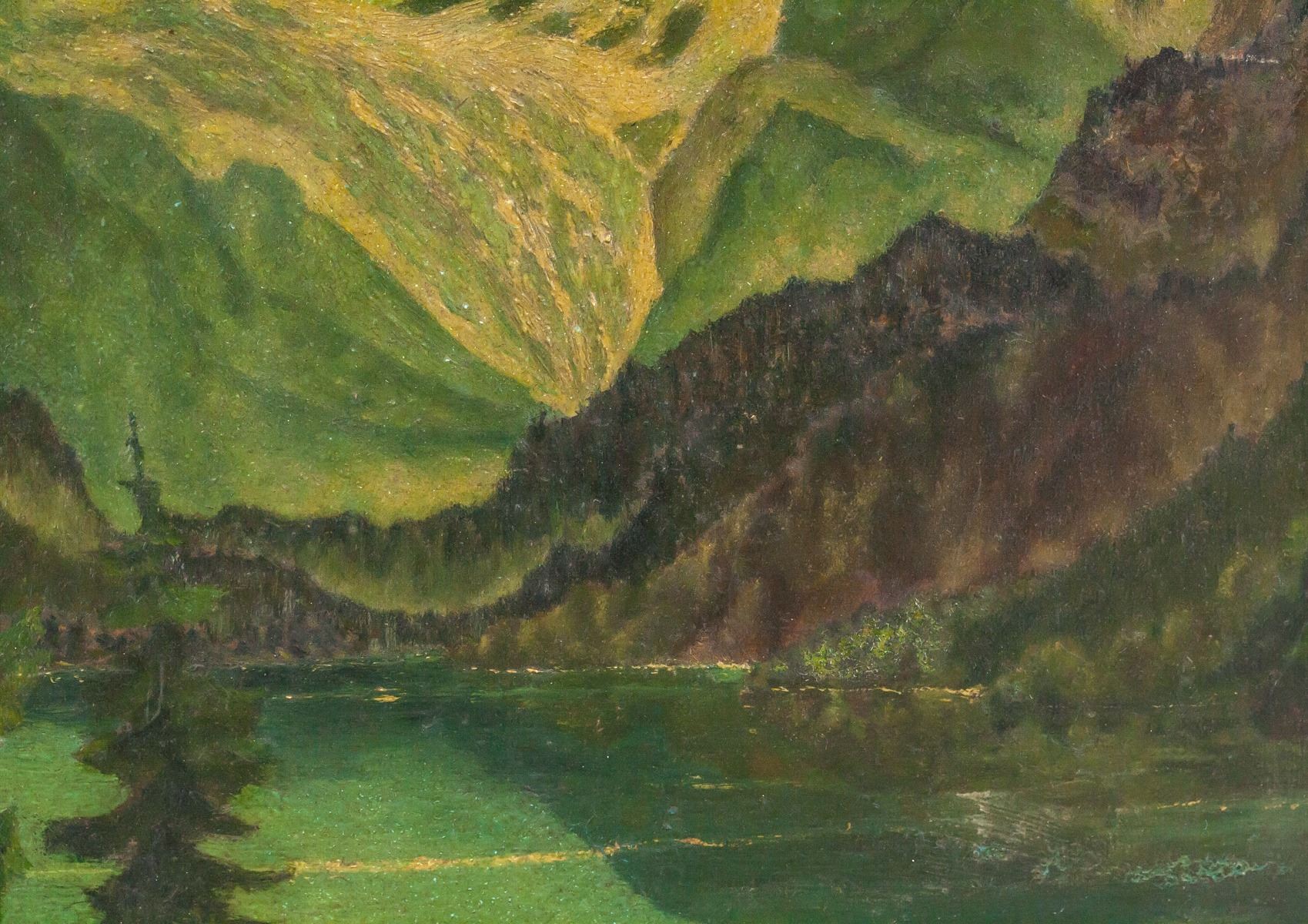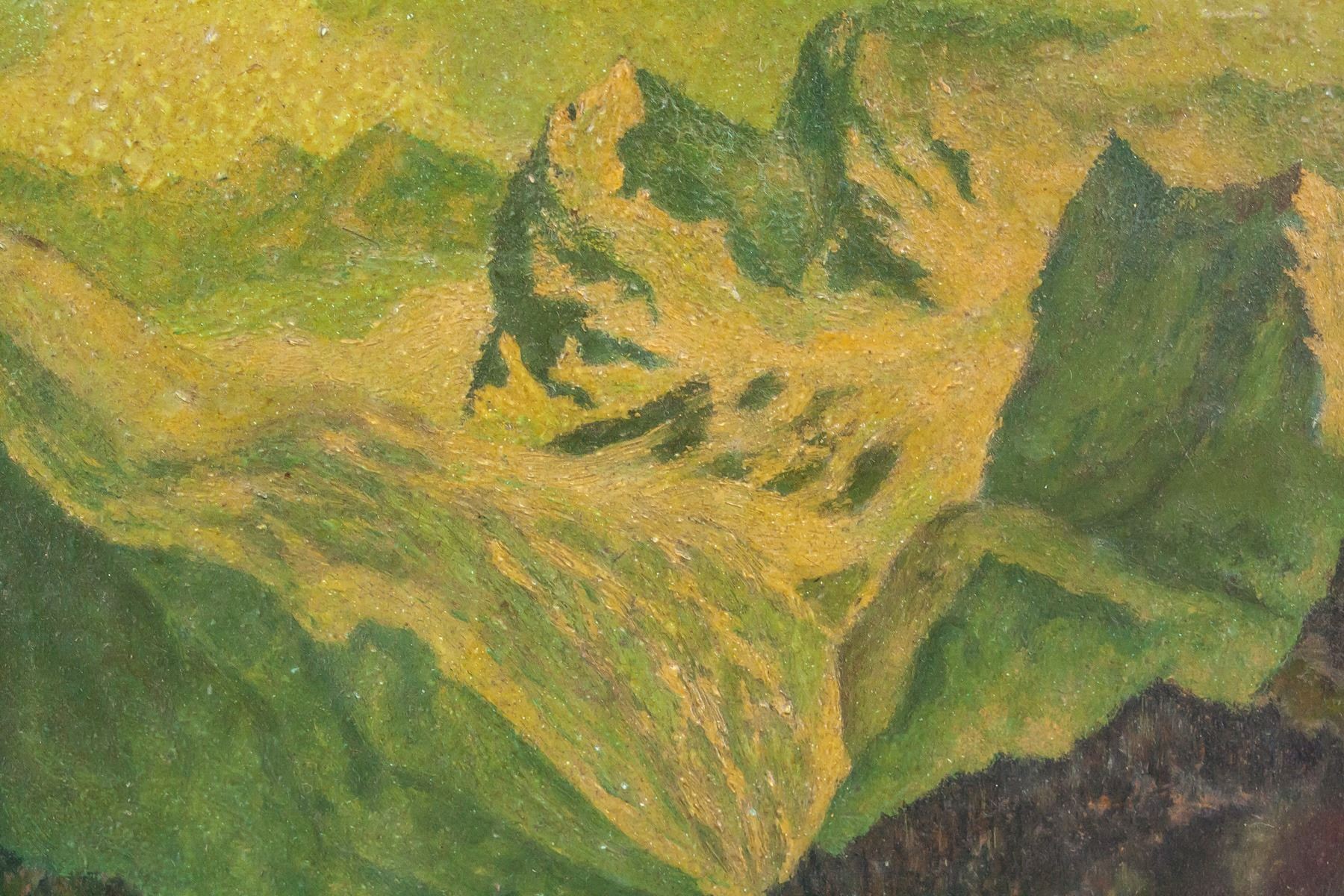 Oil on board, framed. Featuring mountain landscape. Lower right corner signed with artist initial. 22.5 x 19.5 cm (8.75 x 7.5 in), Frame: 30.5 x 27.5 cm (12 x 11 in). PROVENANCE: This lot carries limited provenance from a Private German collection
