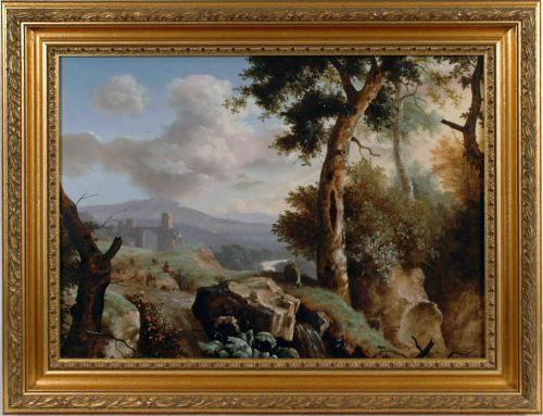 Oil on board, "Late Afternoon Pastoral", 17.5" x 23.5", framed 24" x 30" titled on back