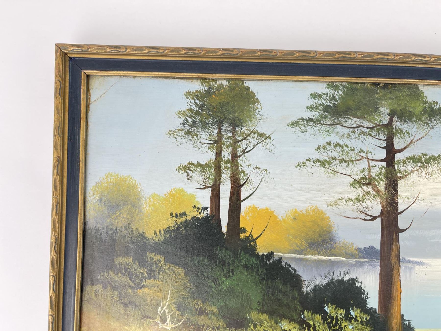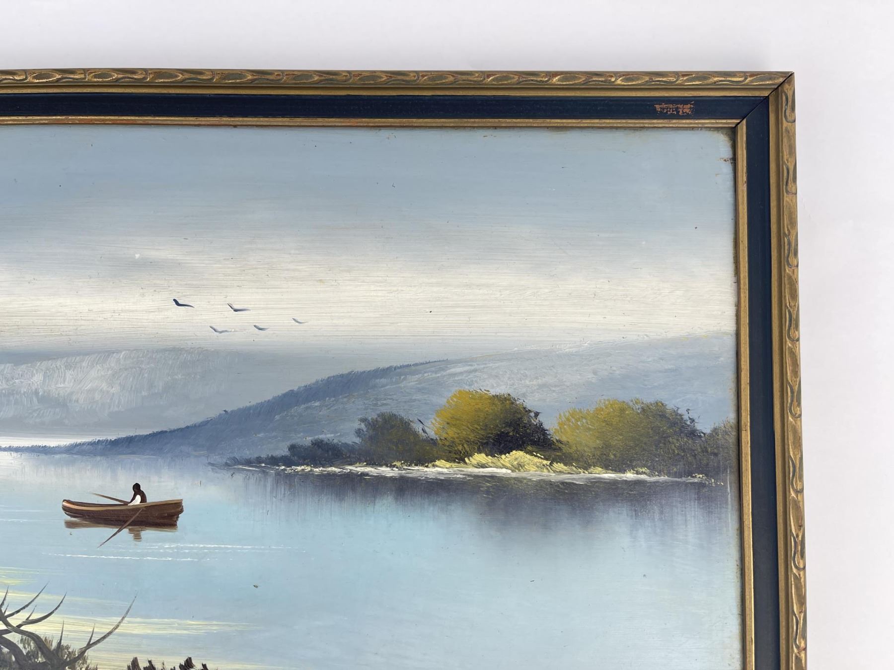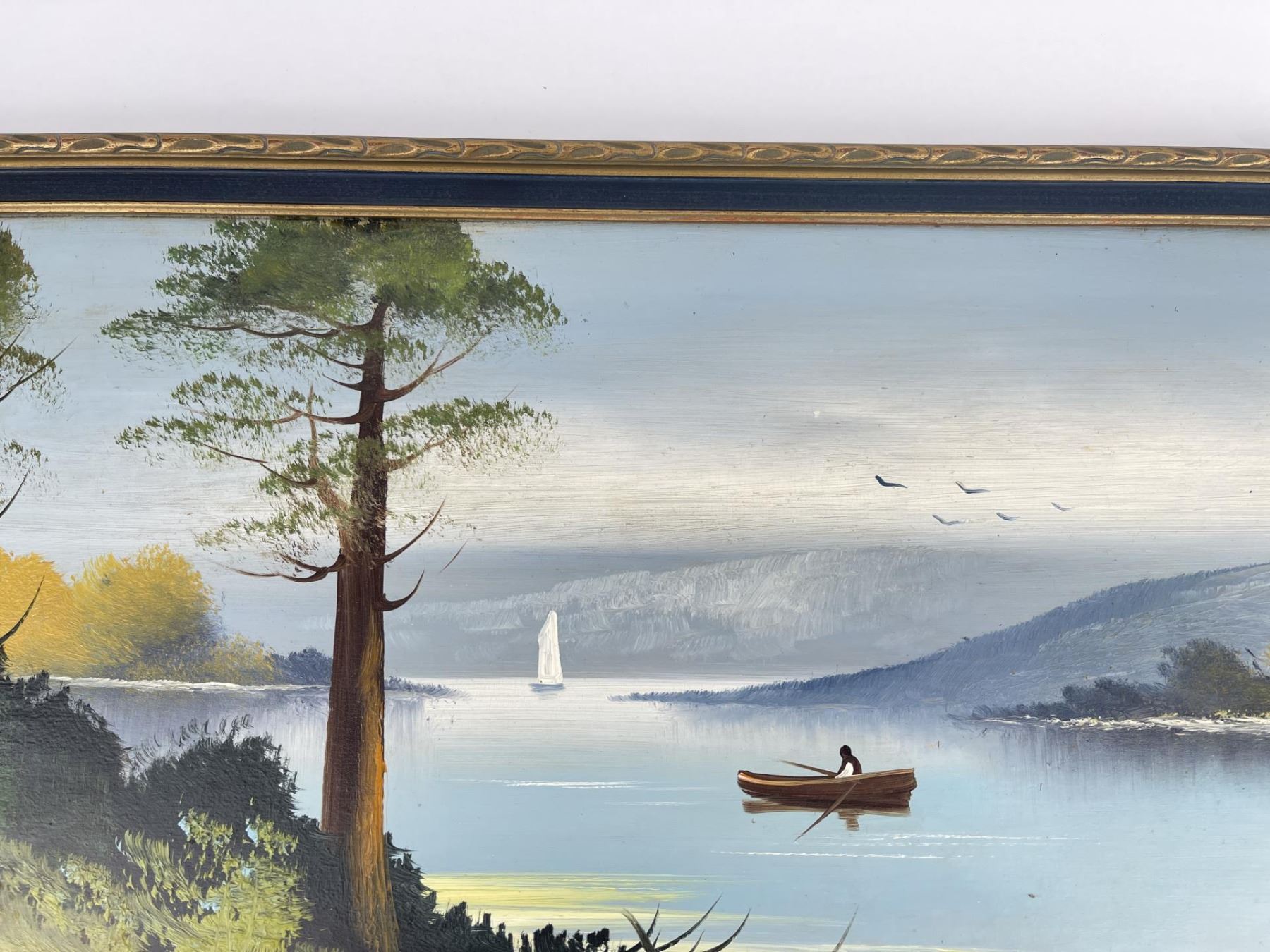 Itinerant tourist painting. 15" by 29 1/4" framed.