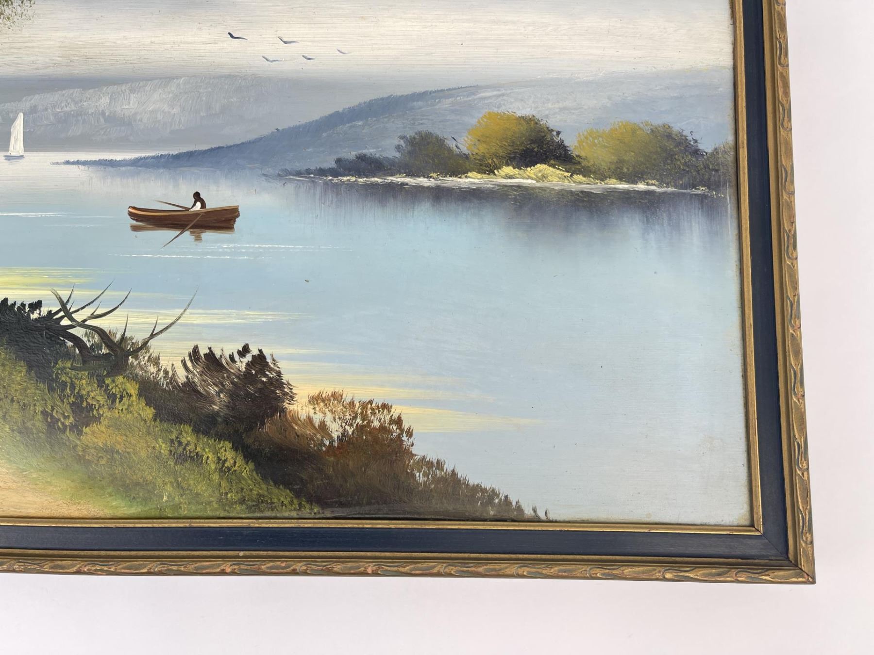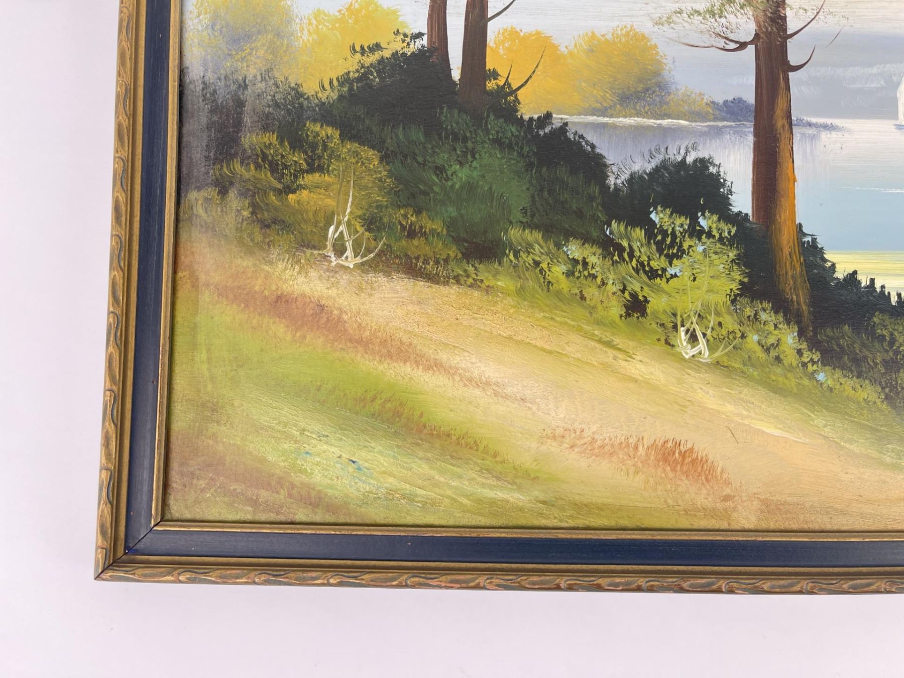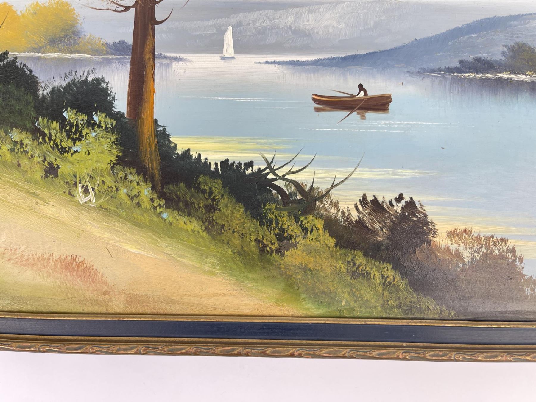 Itinerant tourist painting. 15" by 29 1/4" framed.