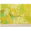 16" x 20" in a 23" x 27" wood frame, signed (illegible) contemporary artist, done bright colors. Excellent condition, frame has a few dings.
