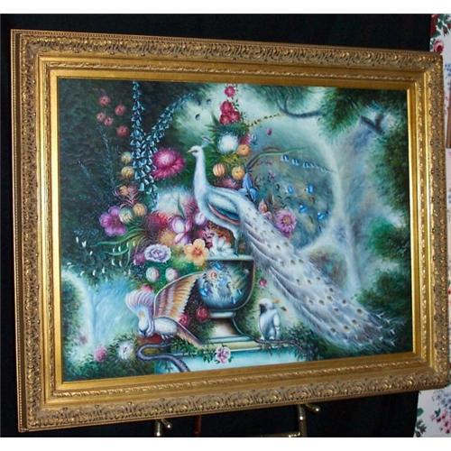 <tr><td>Title:Oil on Canvas Bird of Paradise Gold Leaf frame</td></tr>