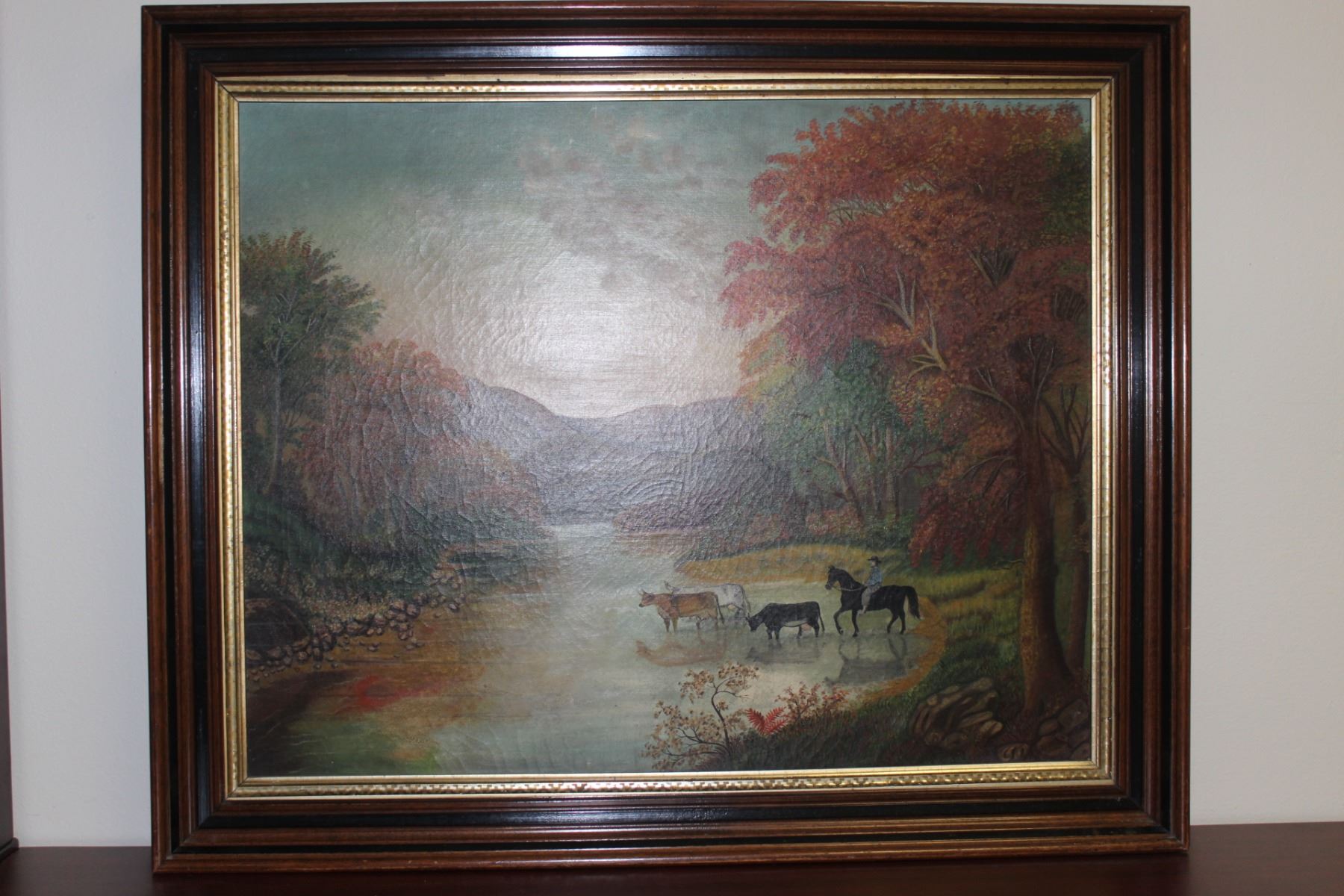 possibly from a school - early 20th century - nice subject and scenery - overall= 29" x 35 1/2"
