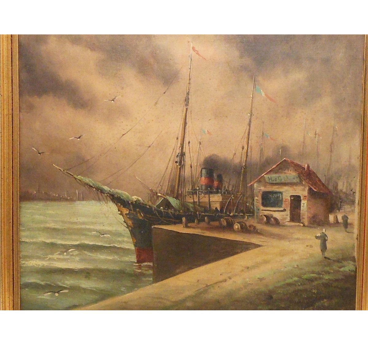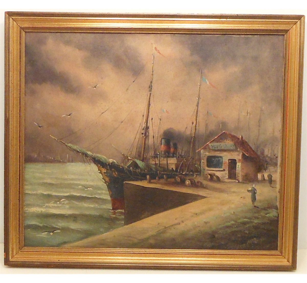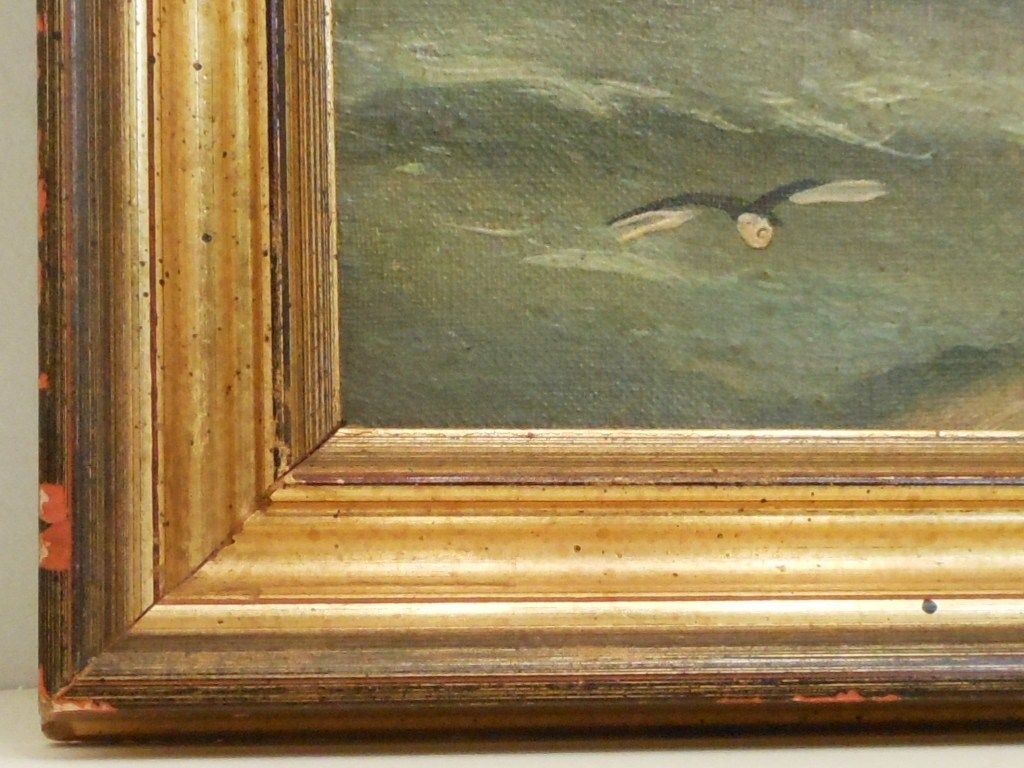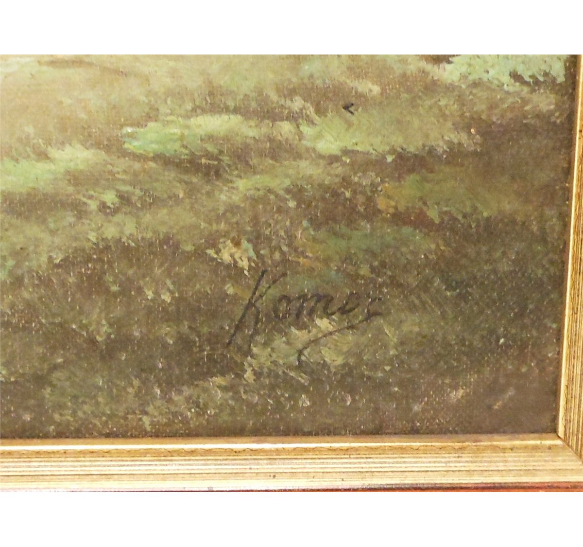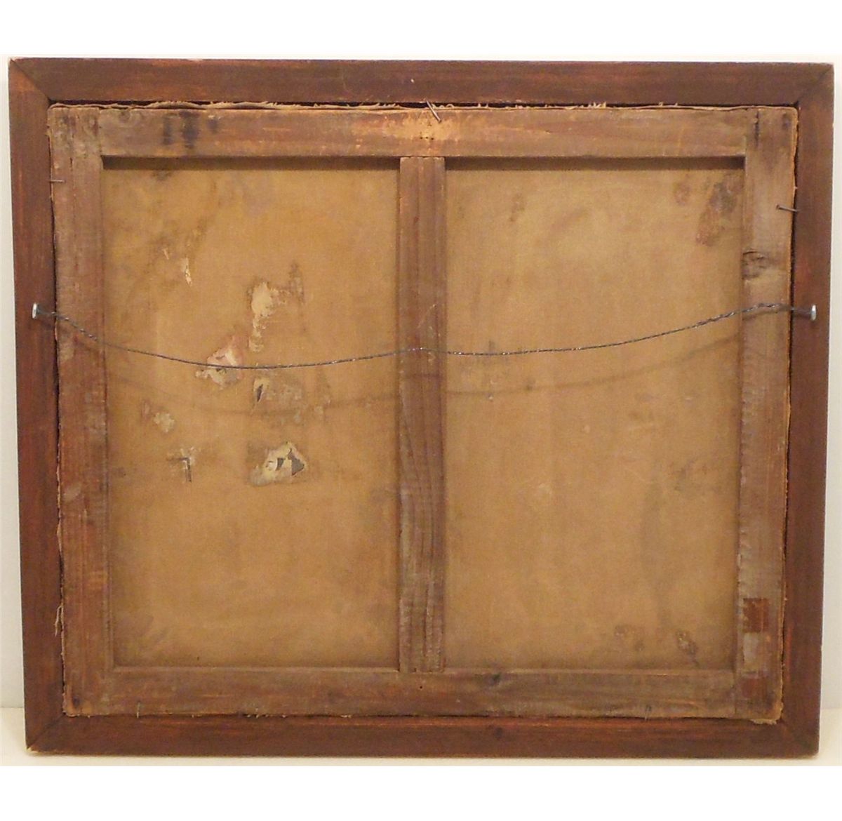 18" x 21 1/2" in a wood frame, signed (illegible), wonderfully done oil on canvas. Great condition with some spotting, needs cleaned. Frame is a little rough.