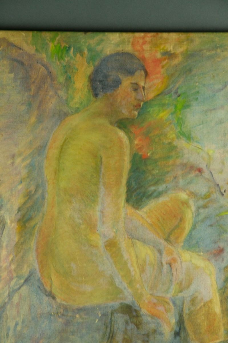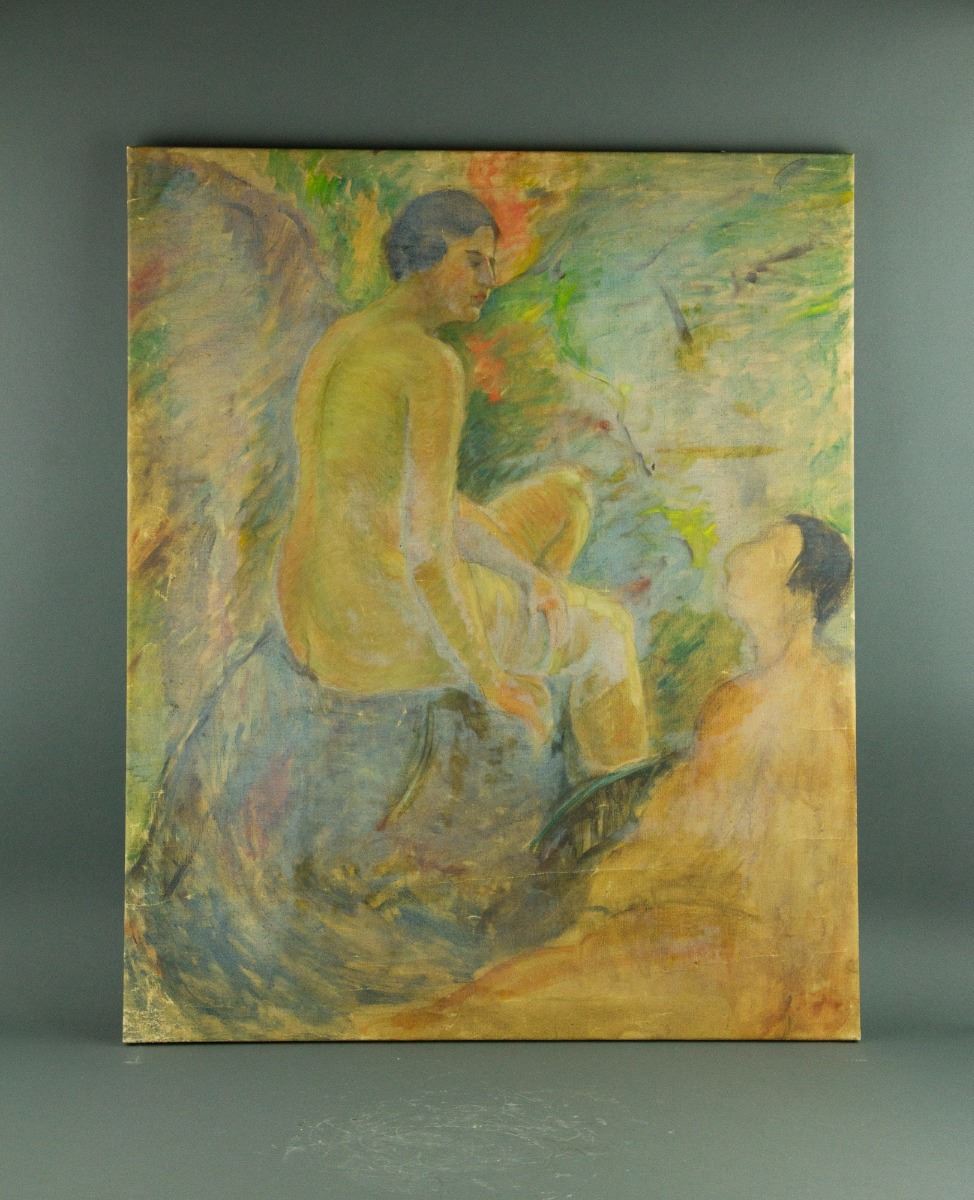 Seated nude figures; double oil on canvas; 80 cm× 65 cm