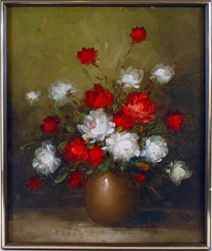 Anonymous oil on canvas, Floral Still Life, 24" x 19", framed 25" x 21" signed indistinctly lower right