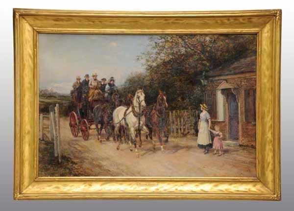 Description Horse-drawn coach scene in a farm landscape with vivid color. Condition (Excellent). Size 20" x 30".
