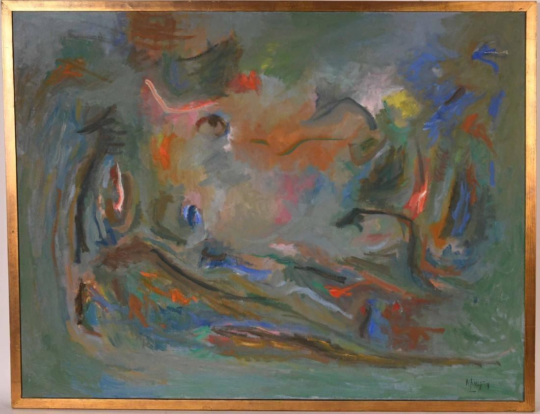 Abstract reclining nude in greens. 34.5"h x 45.5"l