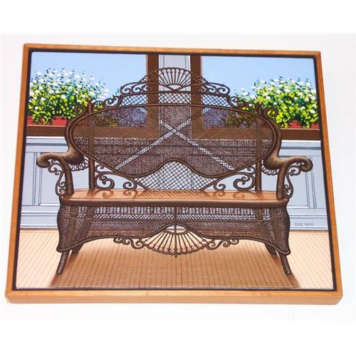 Here is one of many oil on canvas paintigs I have from Sue Wall. All are in the Victorian theme. So if Victorian is your thing...check the others out. This one is a Victorian wicker settee. Wood framed and signed.