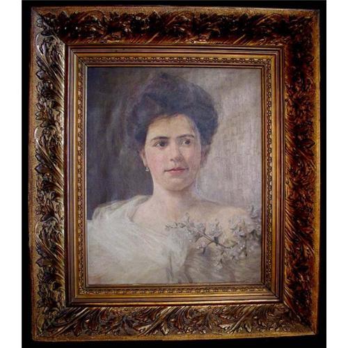 Beautifully executed oil on canvas portrait of a young lady dressed in a white gown with flowers in the foreground. Unsigned, artist unknown. Comes in a beautiful, museum-quality gilt frame. In good used condition with minor signs of wear a shown. Please ask questions, request additional photos and shipping costs before buying.