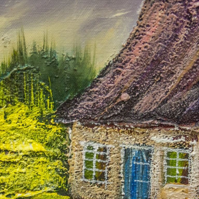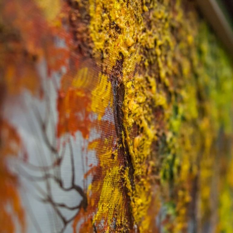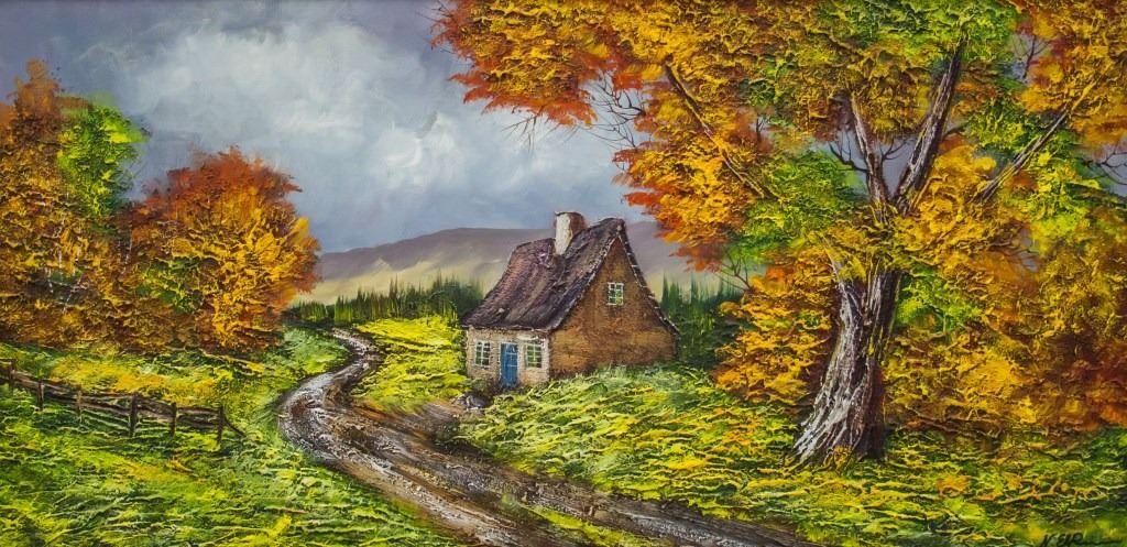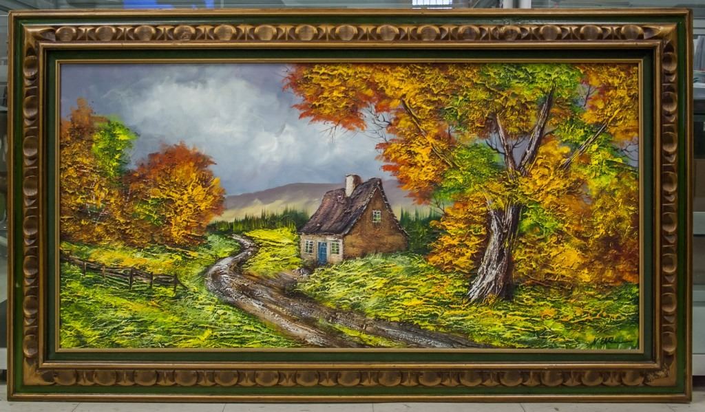 Oil on canvas, framed. Featuring landscape scene in impasto style. Signed "N. Elrini" to the bottom right. Canvas size: 59 x 120 cm (23.3 x 47.5 inches). Frame size: 82 x 143 cm (32.5 x 56.5 inches).