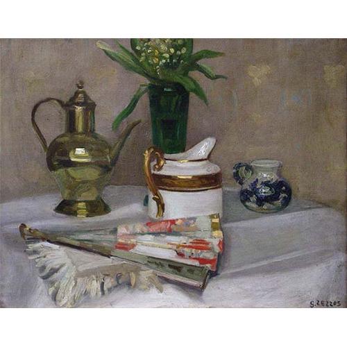 Beautiful still life with a fan signed G. Zezzos on lower right. Georges Dominique Zezzos (1883-1959) was a French School painter born in Venice. He exhibited in the Nationale des Beaux Arts; Salon des Independants; Tuilleries; in Florence, Milan and Turin. His work has sold in Sotheby's Milan and other important international auction houses. Zezzos is also the gentleman portrayed in his friend's Ulisse Caputo's (1872-1948) painting "Symphonie," which is part of the collection of the Musee d'Orsay, Paris. Zezzos work is part of the collection of the Musee du Petit Palais and the Museo de Montevideo. He is listed in Benezit (Dictionnaire des Peintres, Sculpteurs, Dessinateurs et Graveurs). In good condition with restoration. Please ask questions, request photos and shipping costs before bidding.