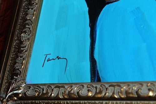 Oil on canvas bears the signature in the manner of Tarkay, beautifully framed dimensions approx 14 x11.