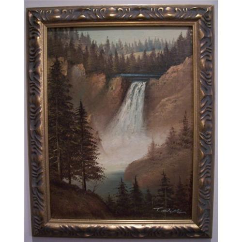 <tr><td>Title:Oil on Canvas Waterfall painting by T William</td></tr>