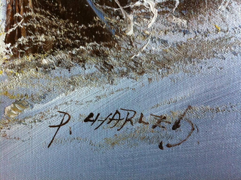 Winter landscape signed by Artist: P. Harvey Framed Size: 41" x 29 1/2" Original: Oil on Canvas
