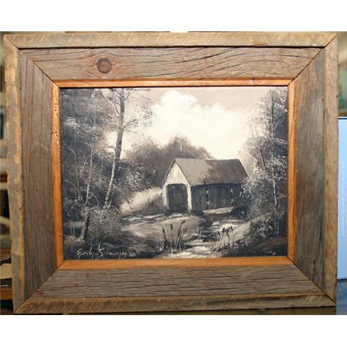 This is a beautiful oil on canvas painted by the american artist, Evelyn Sellmeyer. It is a beautiful scene with a covered bridge in fantastic monotone shades in a perfect rustic wood frame.