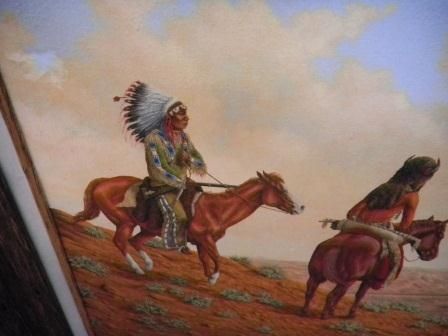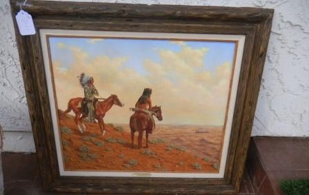Oil on Canvas, titled "Watching the Iron Horse" by Ann Spraque. Certificate of Authenticiy and Appriasal of $1150.00 in 1982. Measures 24x20 inches without the frame, with the frame it measures 32 x 28 inches. Shipping $40.00 Very good condition, the frame has some scuffs and wear.