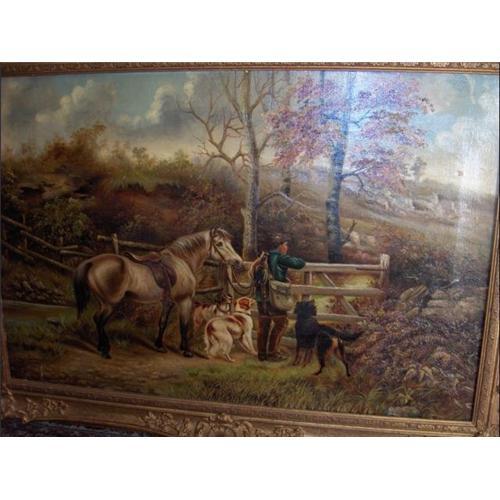 A delightful Oil on Canvas ATT.R.Cleminson.English.fl 1864-1903.Typically depicting a rural scene with the poacher,horse and dogs pondering his next movewhile surveying the landscape......superb.Small aged repair with no effect to the image only visible verso.