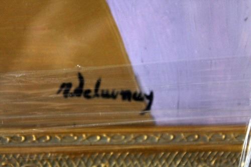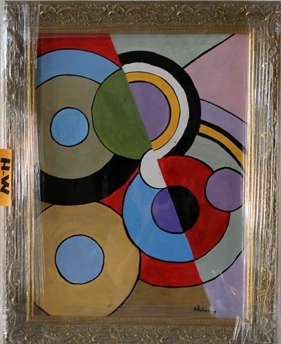 Oil on paper bearing the signature attributed to R. Delaunay, beautifully museum framed unframed dimensions approx 12 x 19.