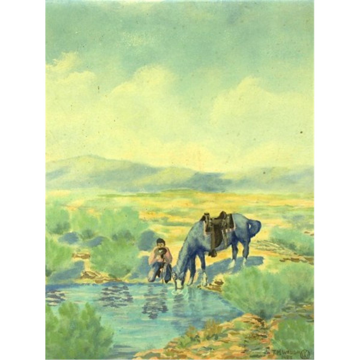 Oil on board by Tom Waugh dated 1985, 13" X 17' image size.
