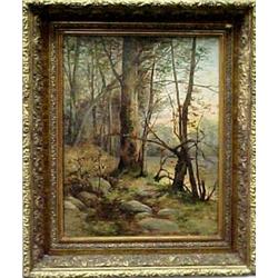 Oil on board, woodland scene, unsigned, framed, image measures approximately 18" x 24"
