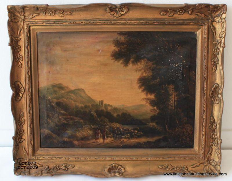 Oil on canvas, "Landscape", 19"x17.5", European 19th century unsigned, good condition, not relined, old frame. Estimate $400 - $600
