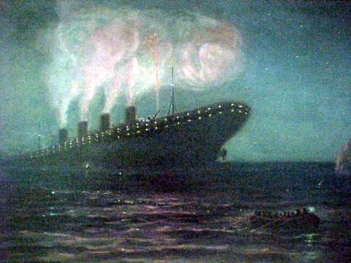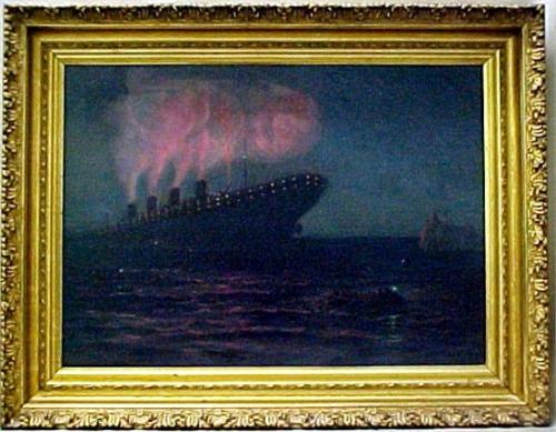 Oil on canvas; Titanic sinking; image measures 20 1/4" x 28"; framed; early 20th C. (no visible defects)
