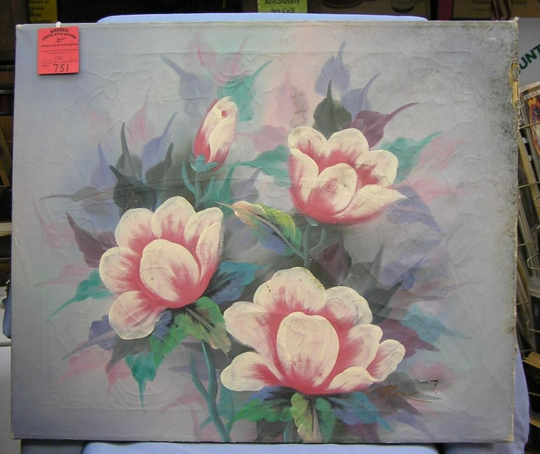 Oil on canvas floral painting condition as found est. value $40.00-$50.00