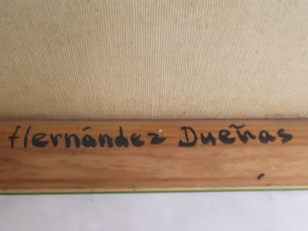 Oil on canvas floral still life, signed H. Duenas. Scuffs. 17 inches x 13 inches.