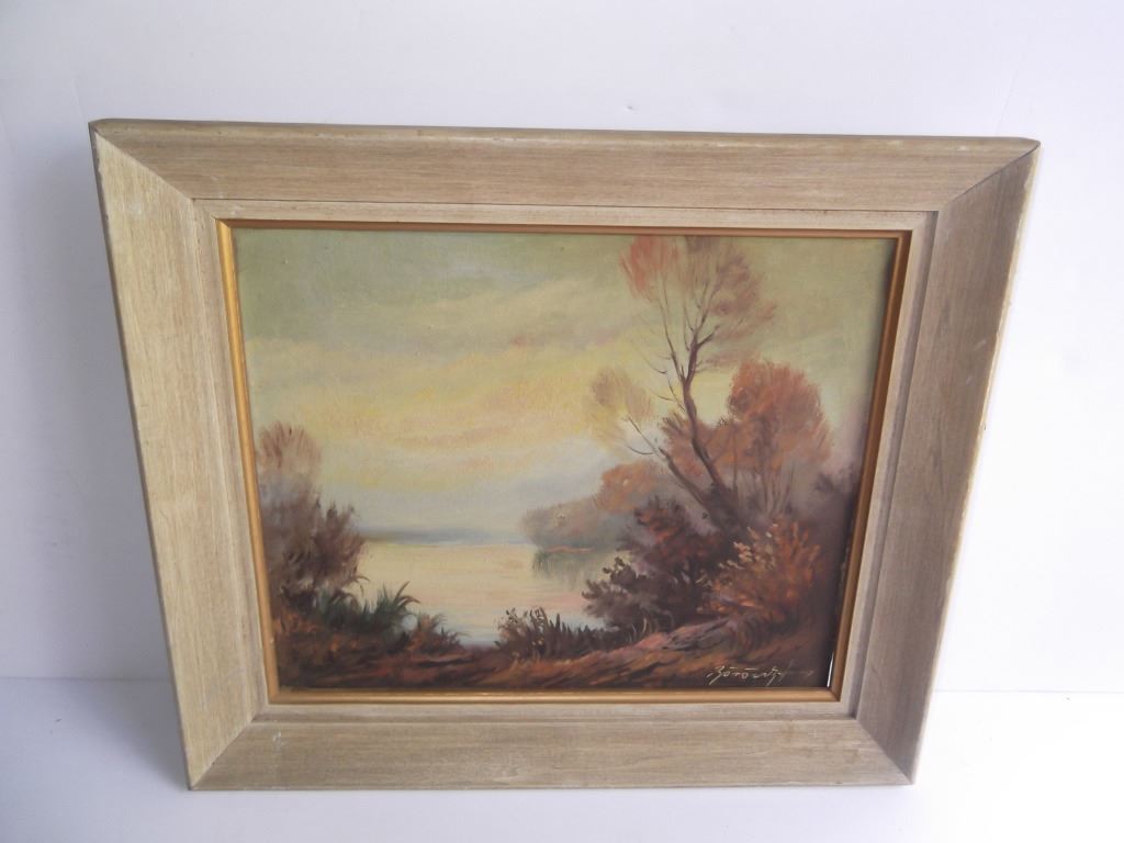 Oil on canvas landscape scene signed illeg. 15 1/2 inches x 13 inches.