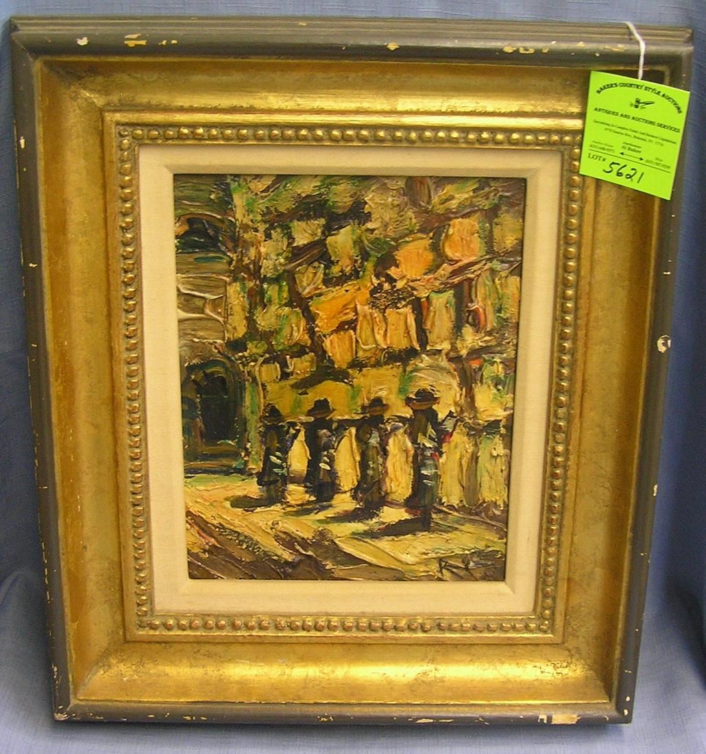 Vintage framed and signed oil on canvas painting of a group of four at the Wailing Wall professionally matted and framed, 14" wide by 16" high, complete art work and frame appear to be in very nice condition est. value $350.00-$450.00