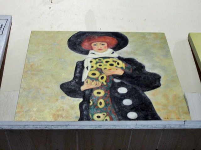 Oil on canvas transfer print - lady in black