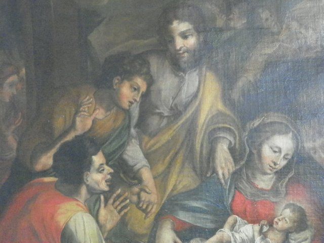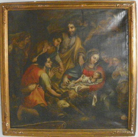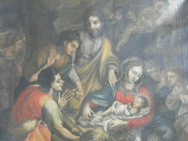Framed "Nativity Scene, on canvas. Approx. 45" x 45" Please read our terms of sale.