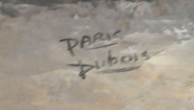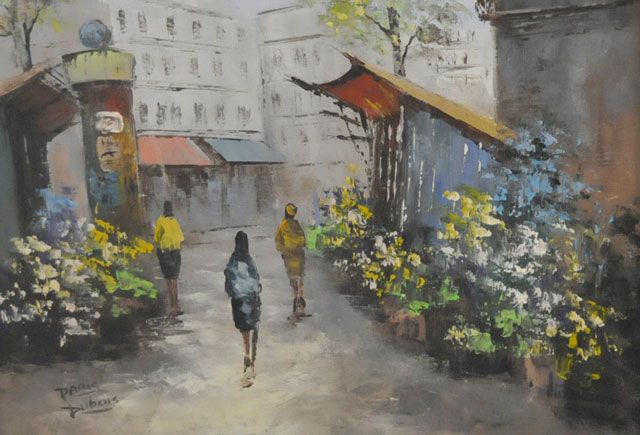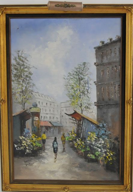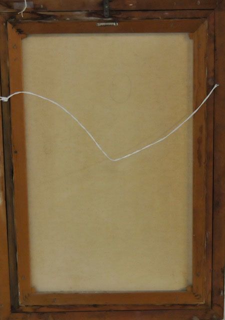 On canvas, in gilt frame, signed lower left. Canvas approx. 24" x 36", frame 29.5" x 42". Please read our terms of sale.