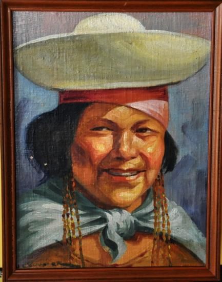 Normal 0 Portrait of a Peruvian man. Oil on artist's canvas board.8,25" by 10,5" framed.Good condition.