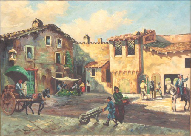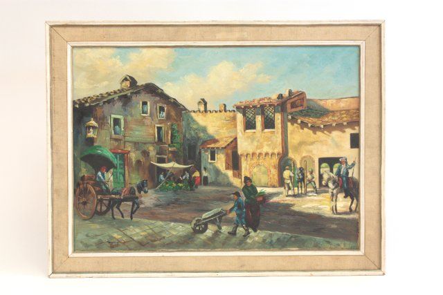 On canvas. Approx. 19.5" H x 27". Please read our terms of sale.