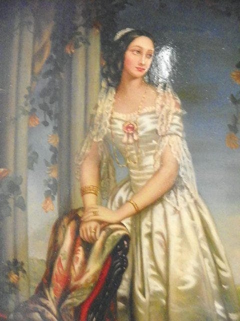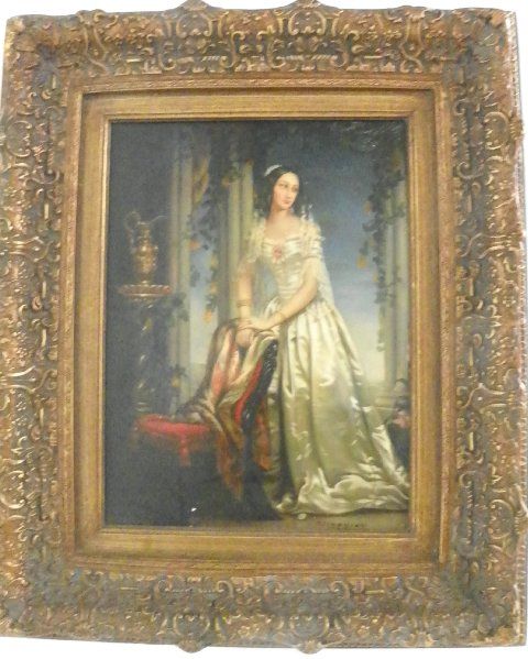 Copy of an "Old Masters" work "Girl with Chair", signed lower right. Approx. 16" x 12". Please read our terms of sale.