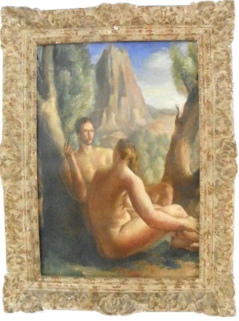 Depicting "Man & Woman Leaning on Tree". Image approx. 14" x 21", framed 20" x 27". Please read our terms of sale.