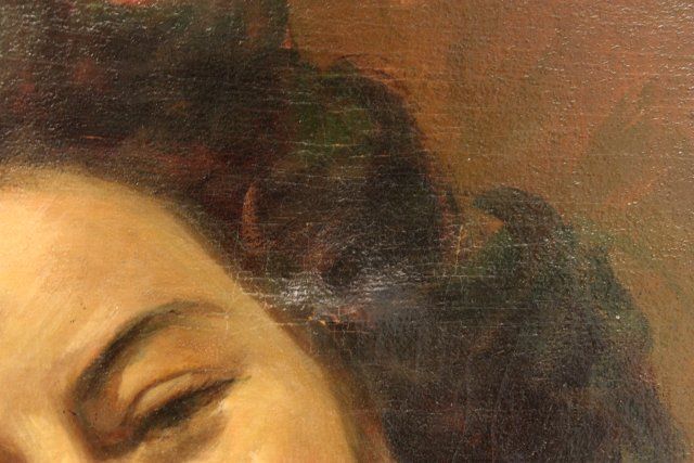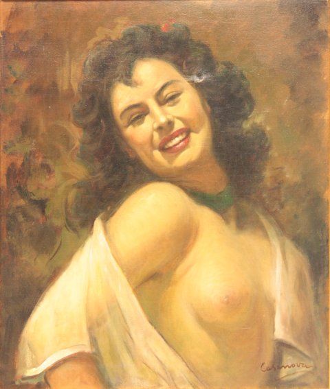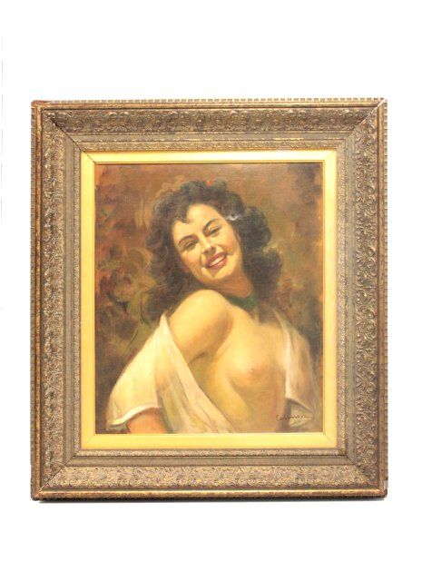 Framed "Portrait of Semi-Nude Beauty", on canvas. Approx. 34.5" x 30" Please read our terms of sale.
