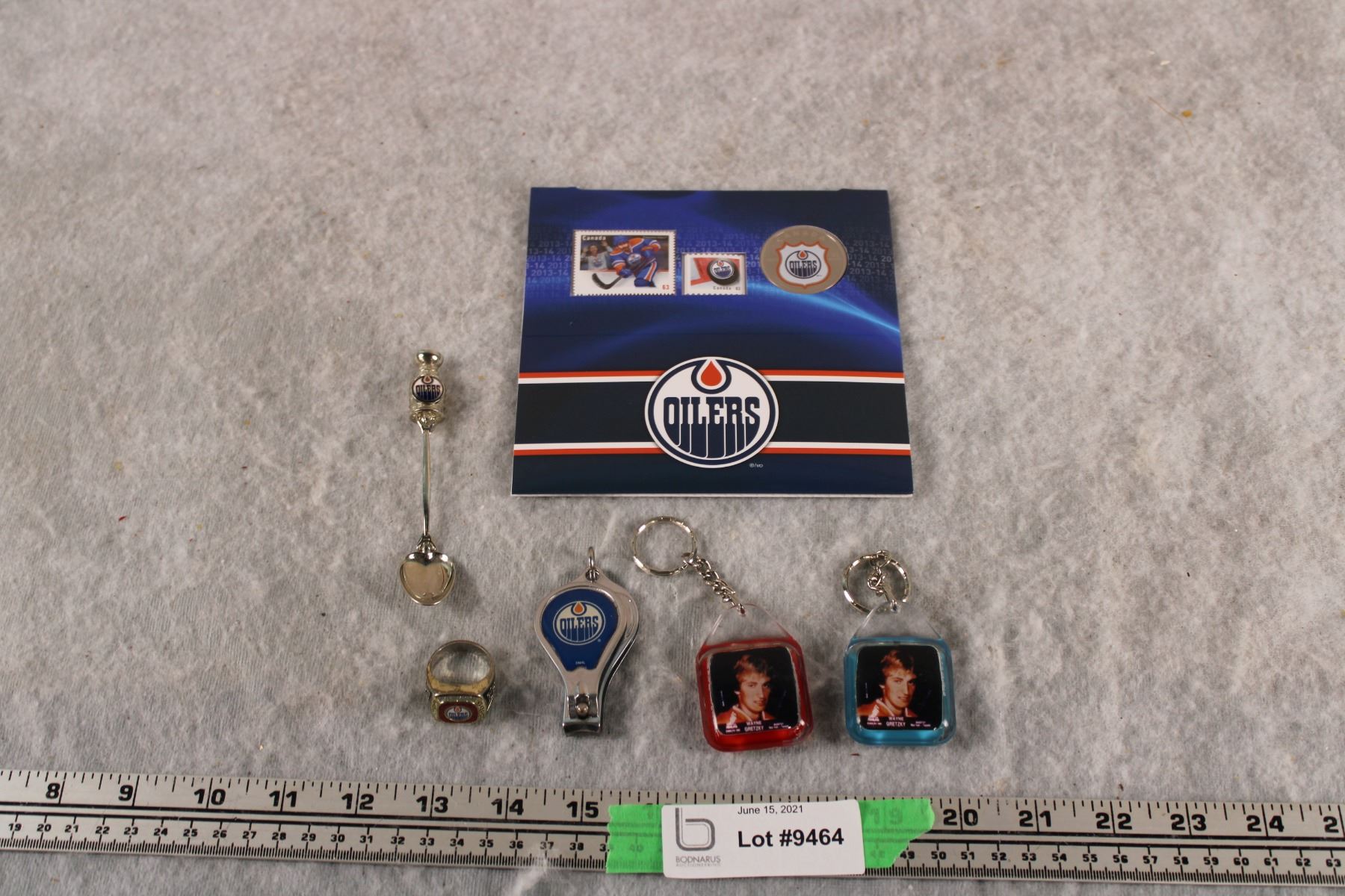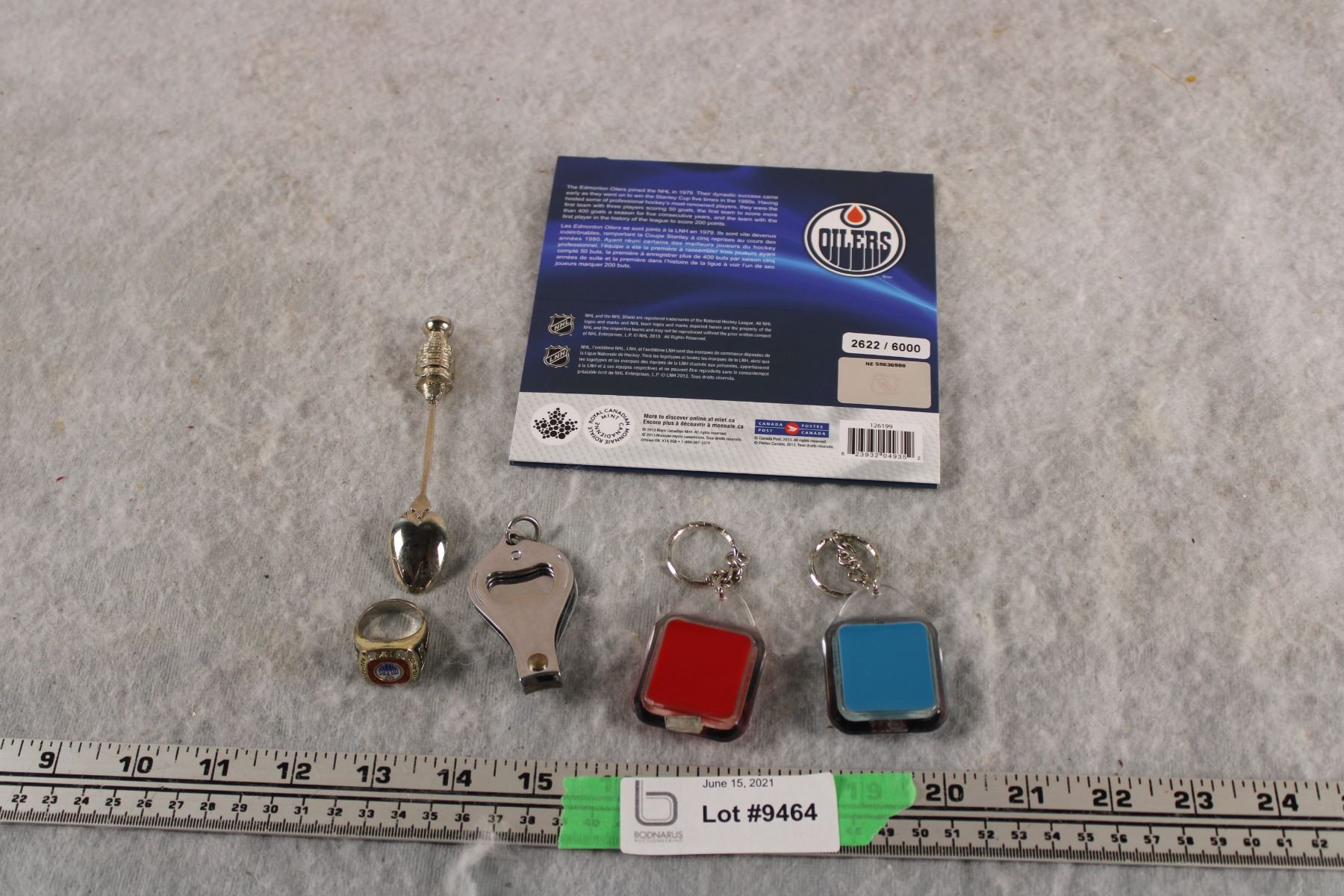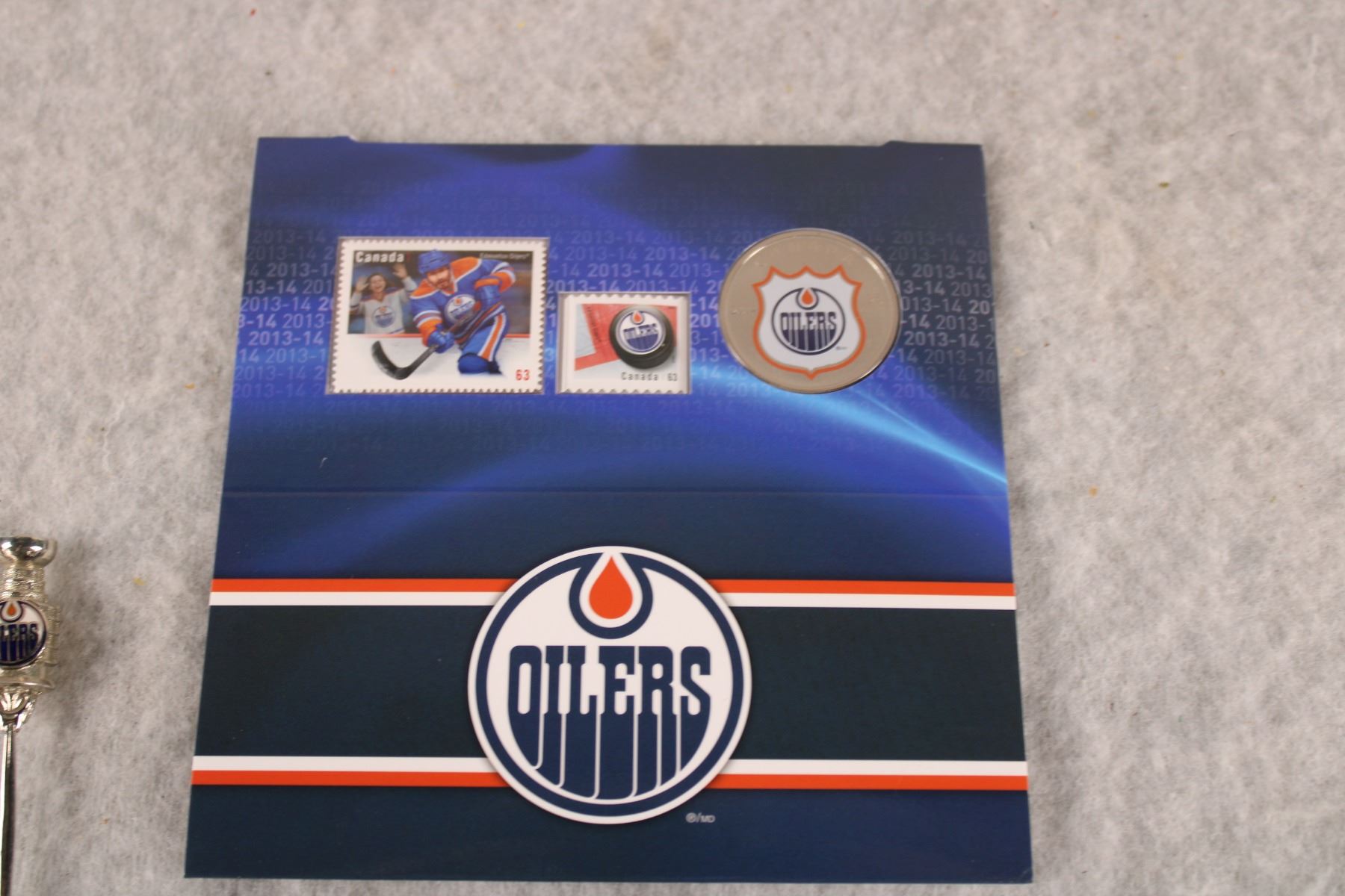 Oilers Canada Post Coin + Stamp Booklet and Keychains and Ring
