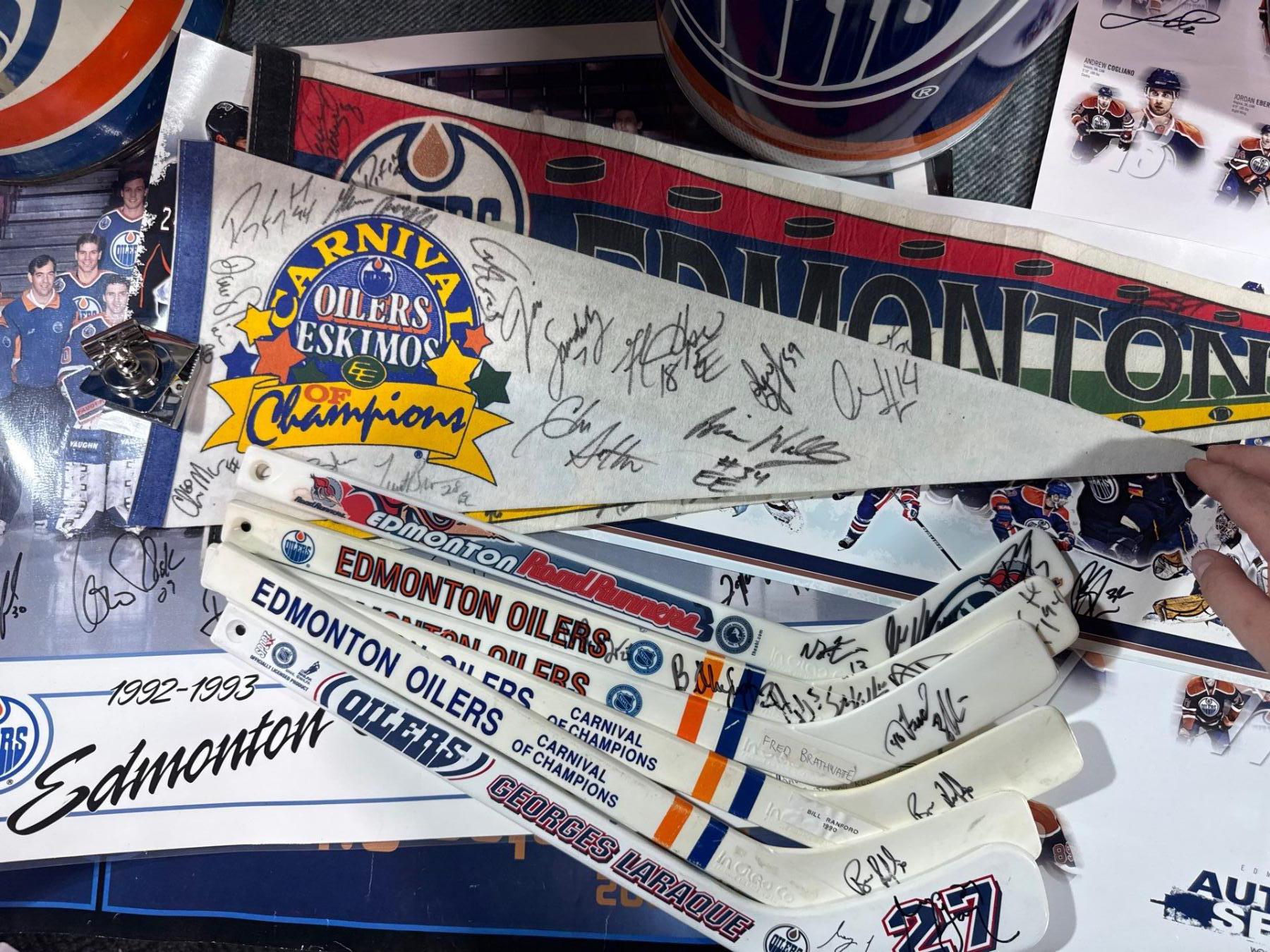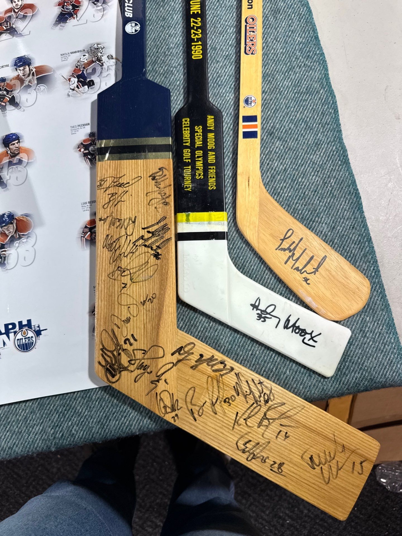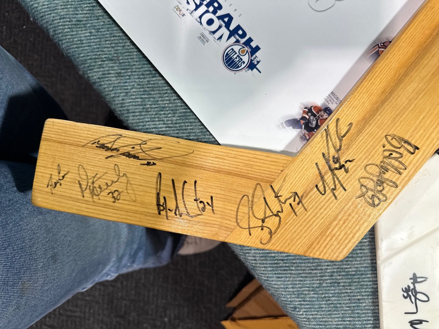 Oilers Collectables: signed Hockey Sticks & Buckets