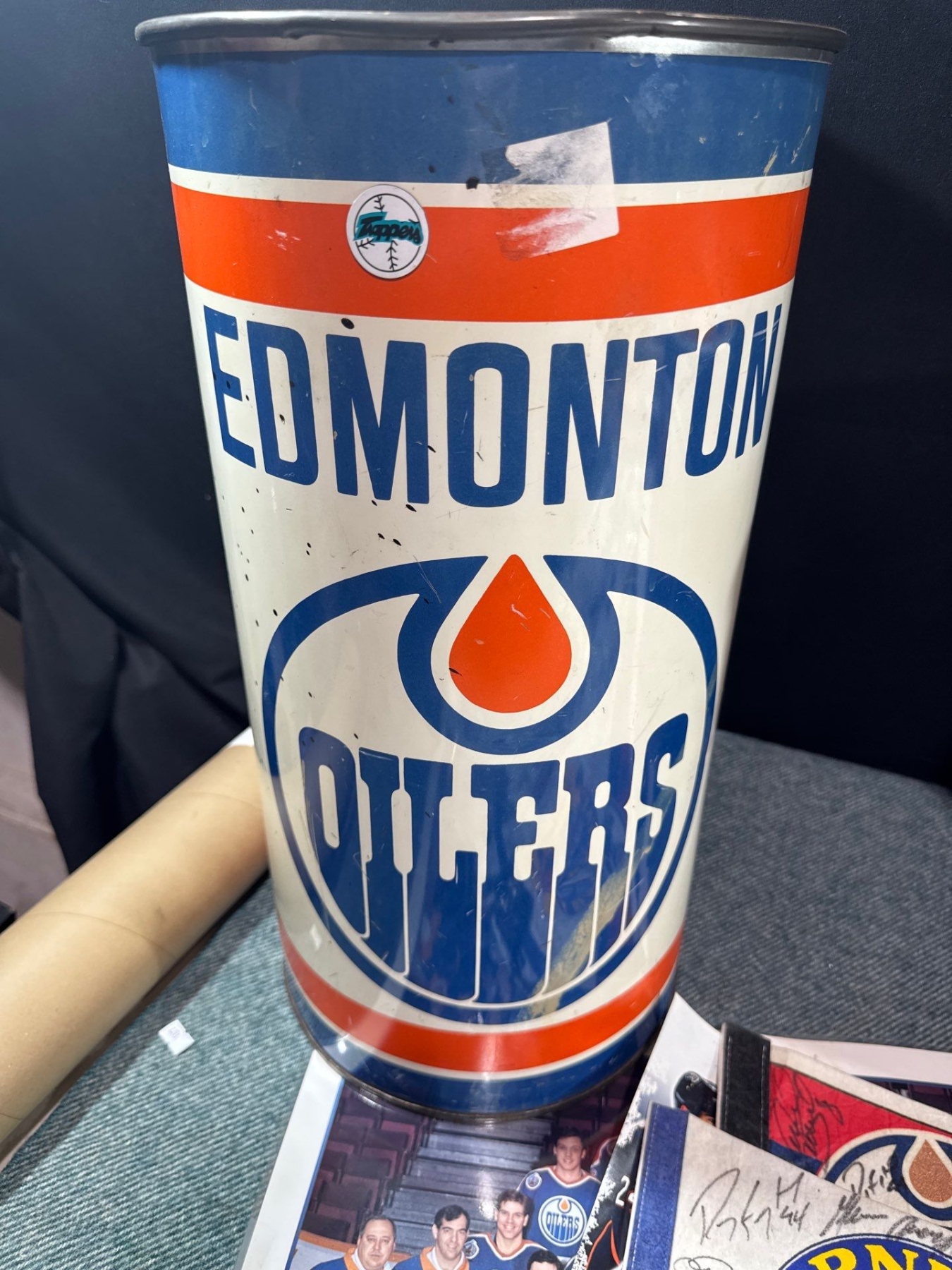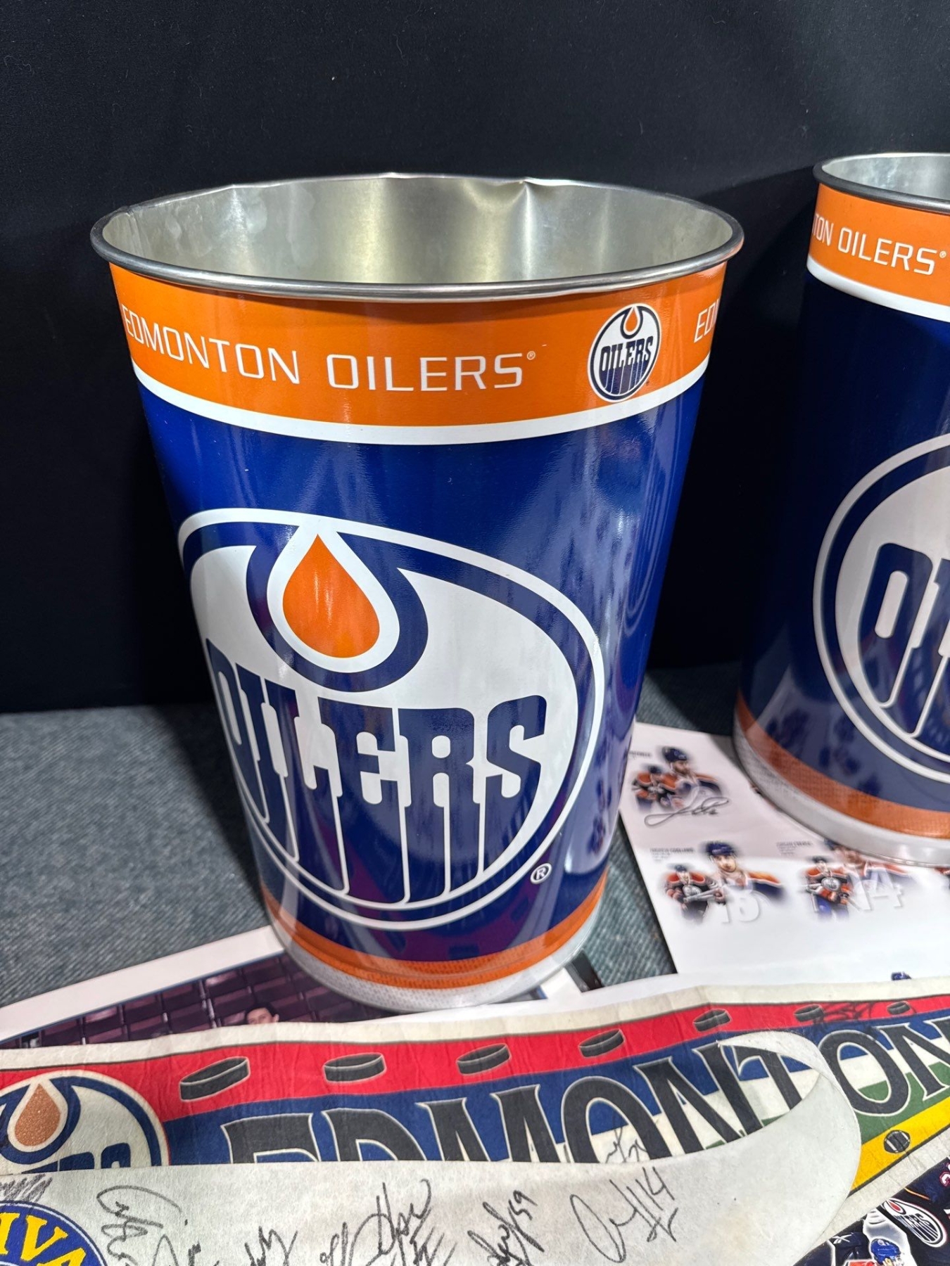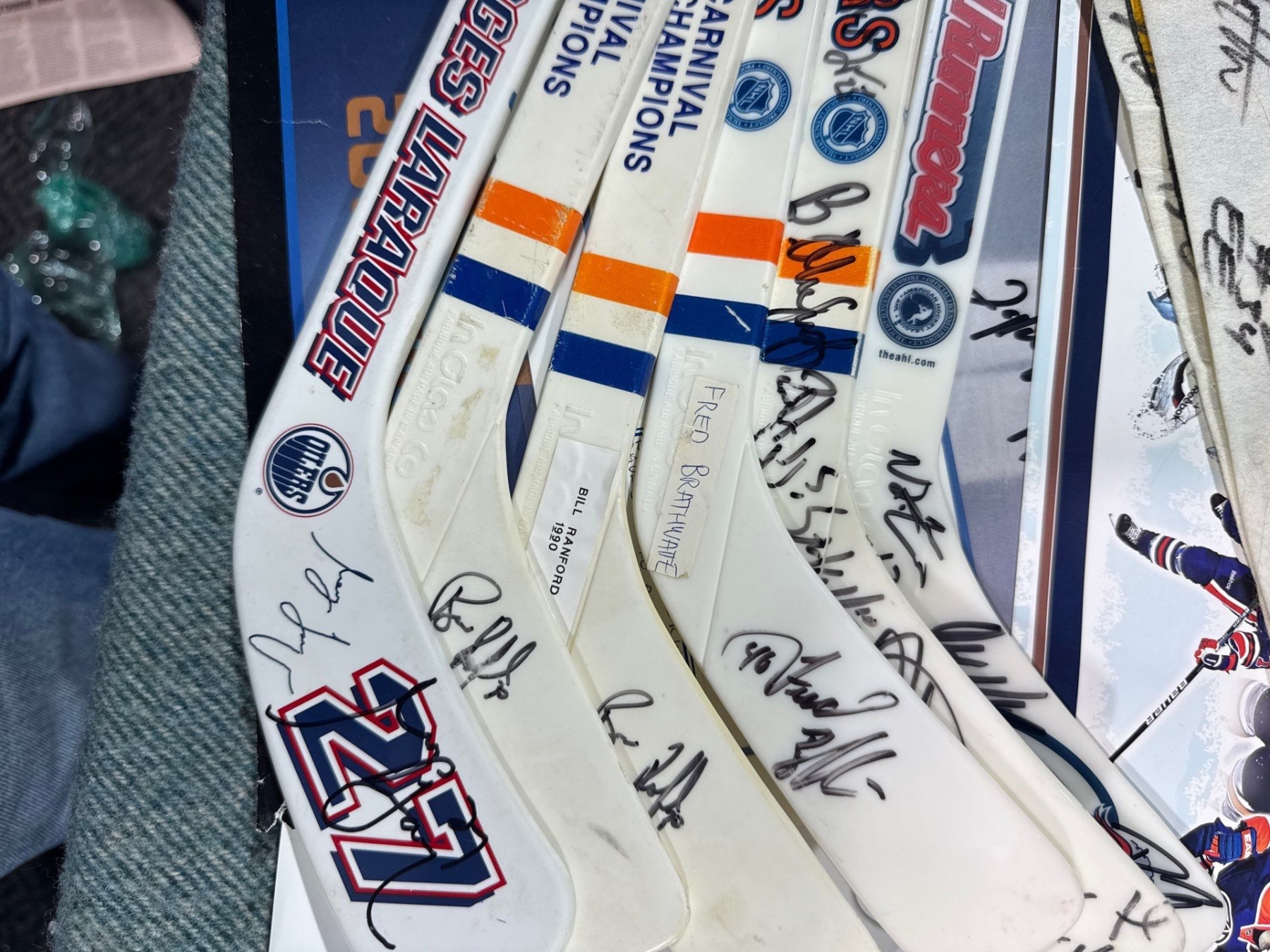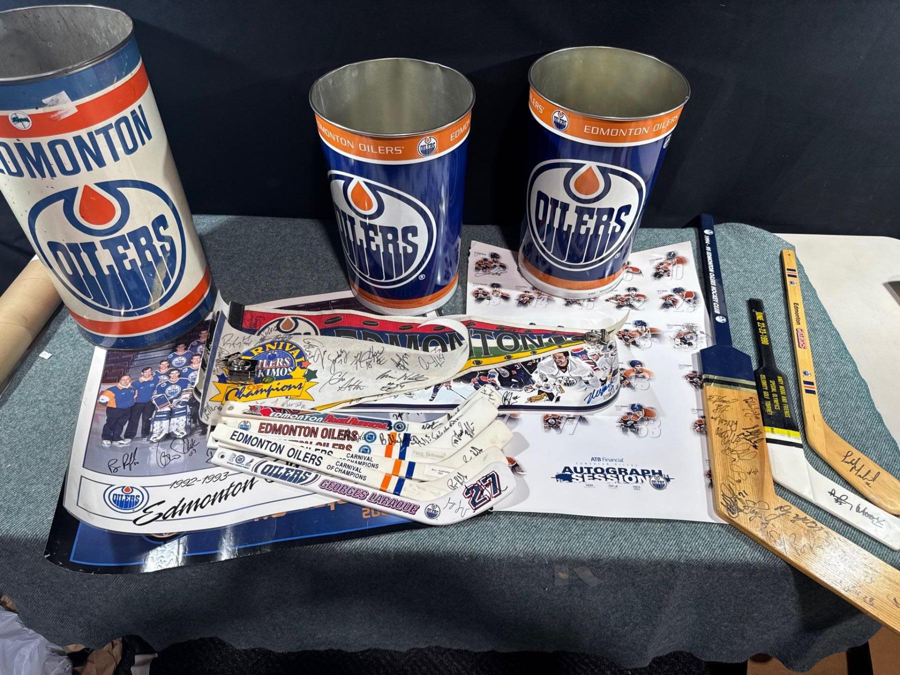 Oilers Collectables: signed Hockey Sticks & Buckets